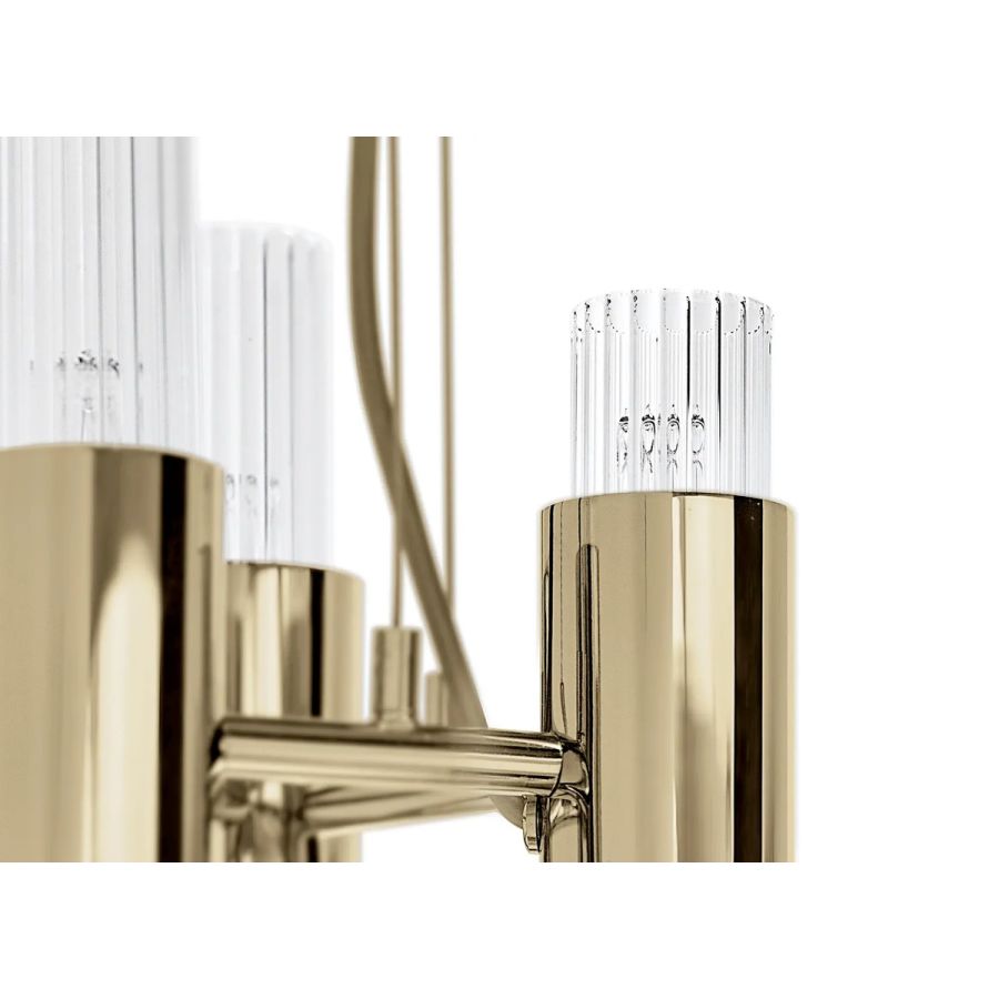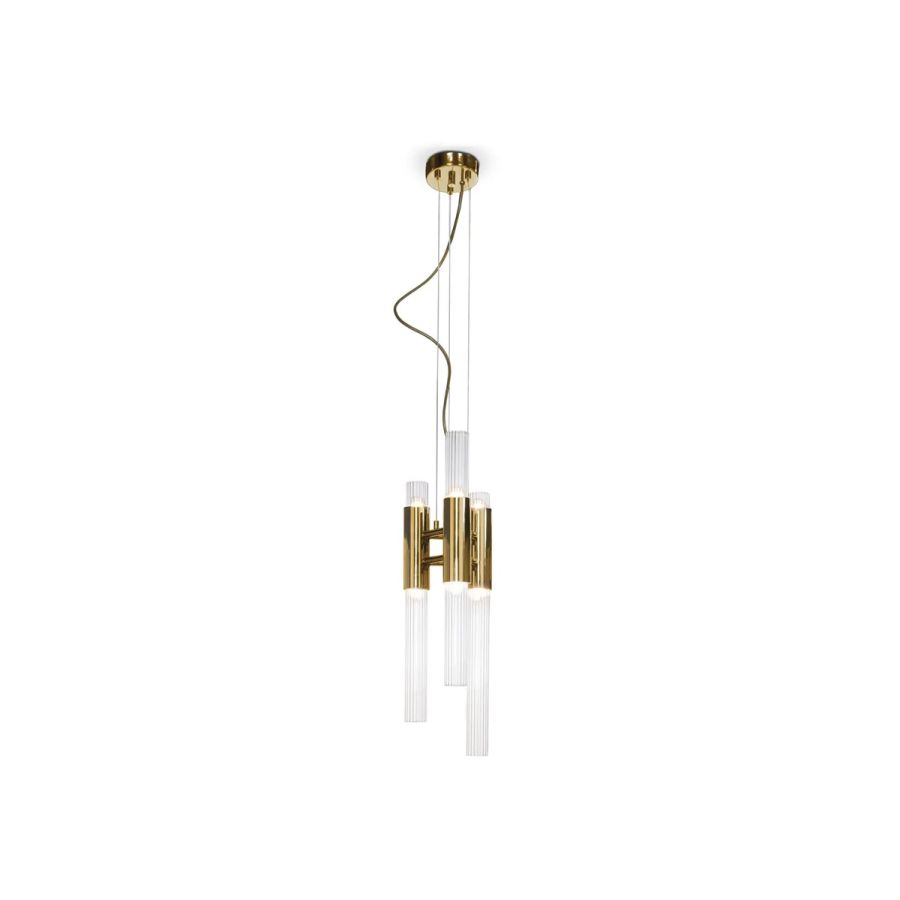 Everything sparkles under the Waterfall Pendant Lamp. Crafted by a master craftsman, this pendant light is an elegant lighting solution made with gold-plated brass combined with ribbed tubes of crystal glass. Its exquisite design captures the glamour and sensation of waterfalls, adding a touch of luxury to any interior decor.