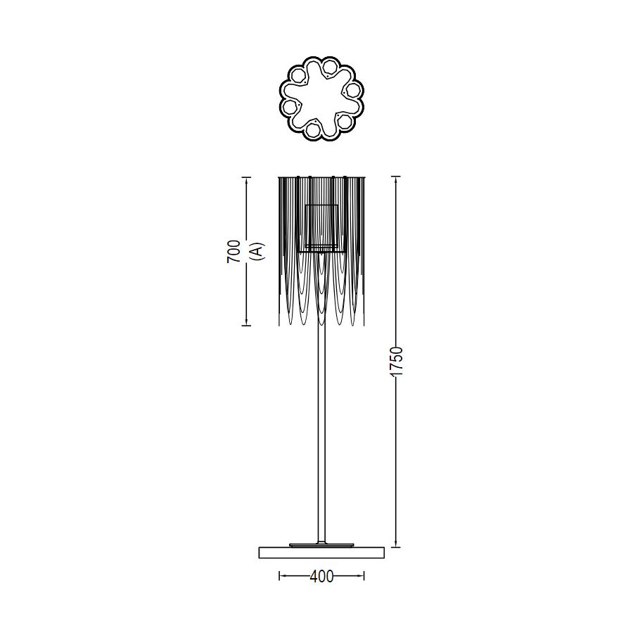 A 400mm Dia. simple classic `Scalloped-Looped` standing lamp. Illuminated by a pyrex glass ball containing a G9-Halogen or LED lamp.