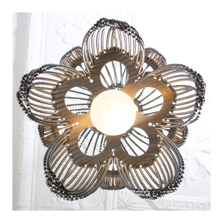 A small `flower-bud` like miniture chandelier pendant lamp. Illuminated by a pyrex glass ball containing a G9-Halogen or LED lamp.