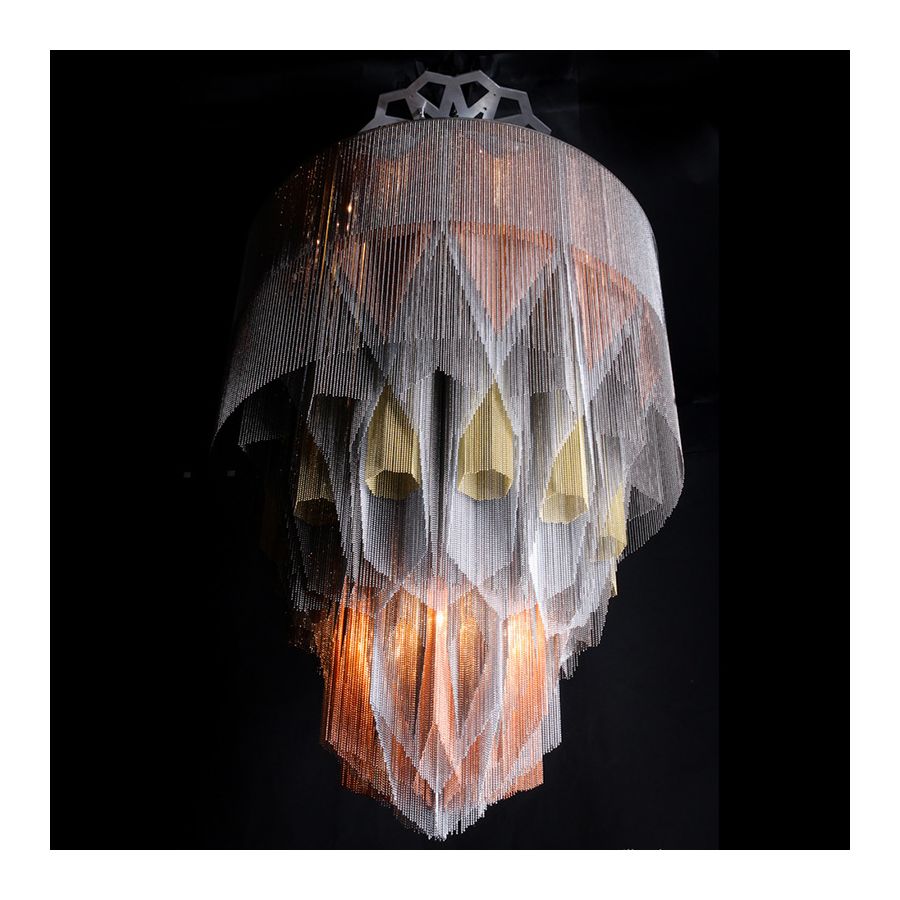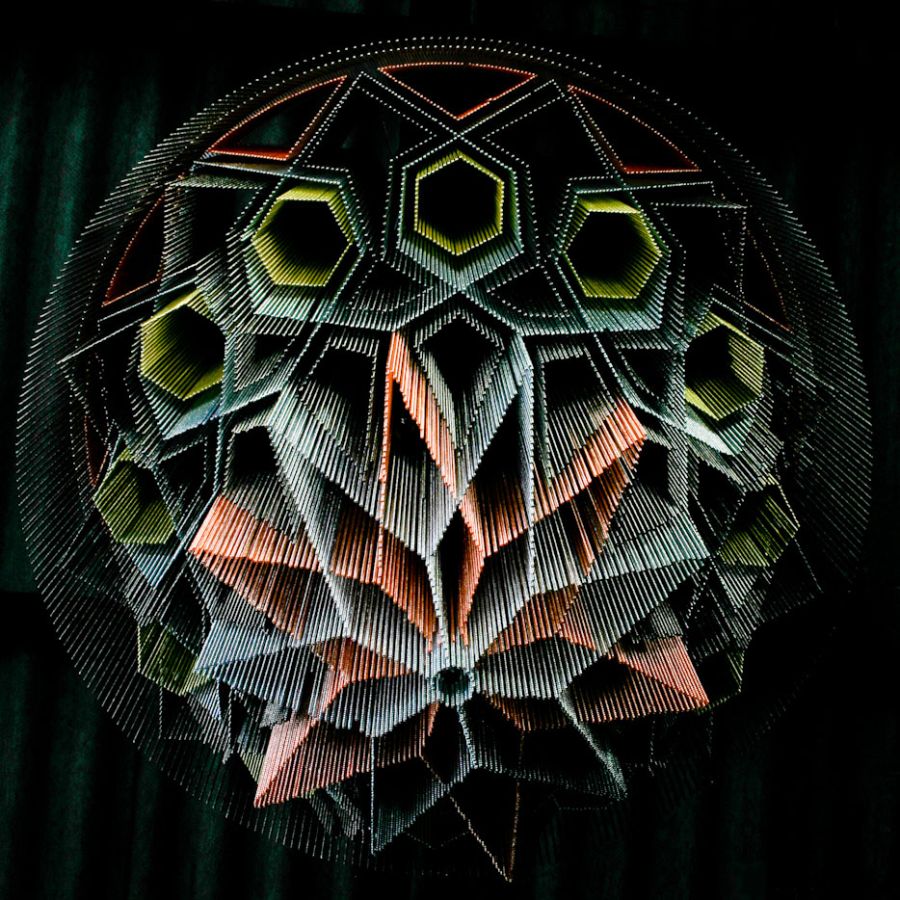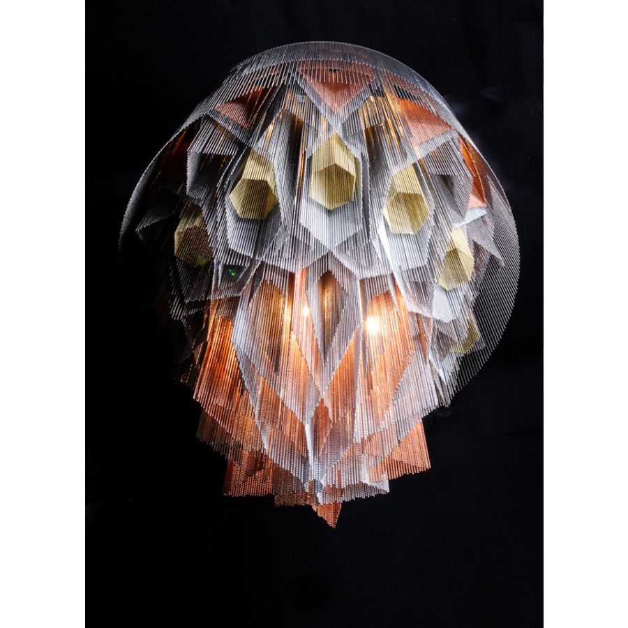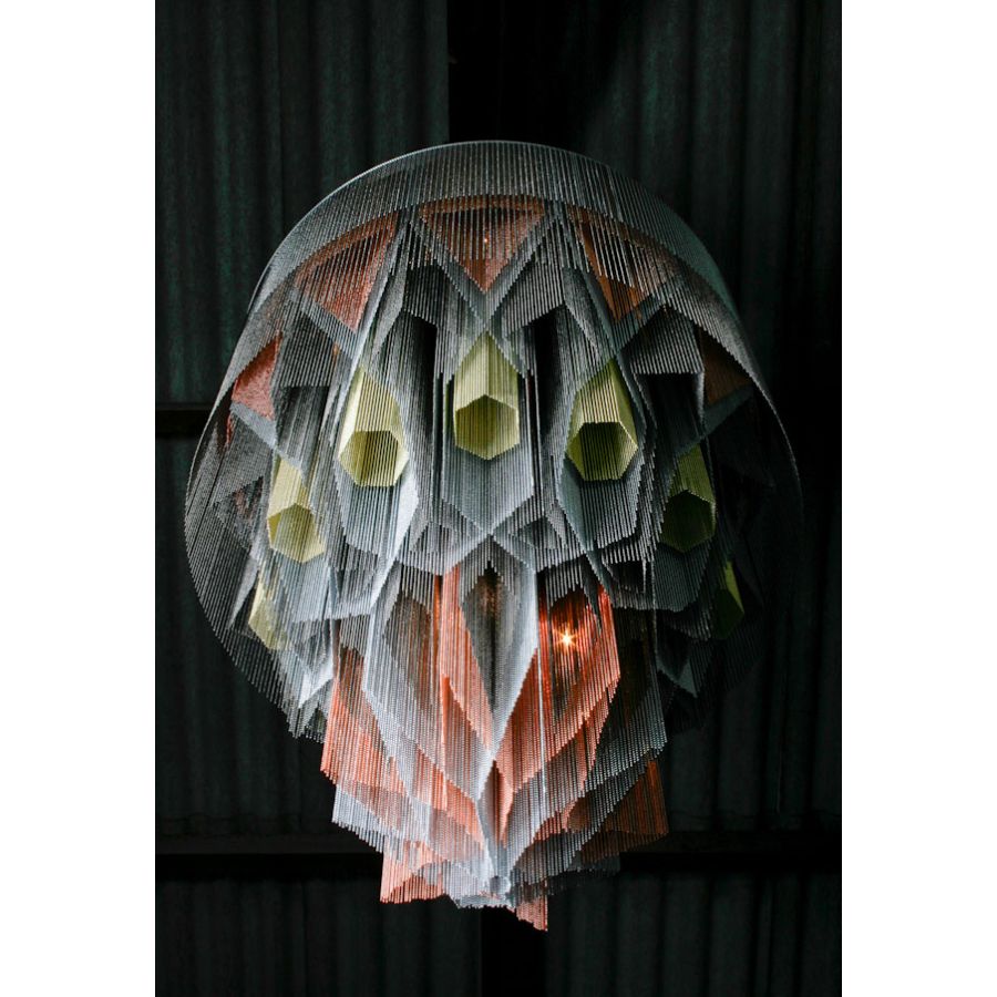 A massive intense Illuminated Mandala sculpture inspired by Islamic patterns which have been translated into three dimensions through the extrusion of the complex interlocking geometry. Illuminated by suspended G4 Halogenor LED lamps.