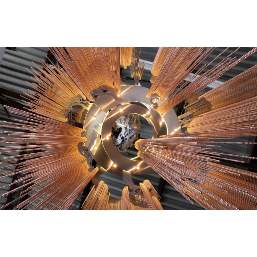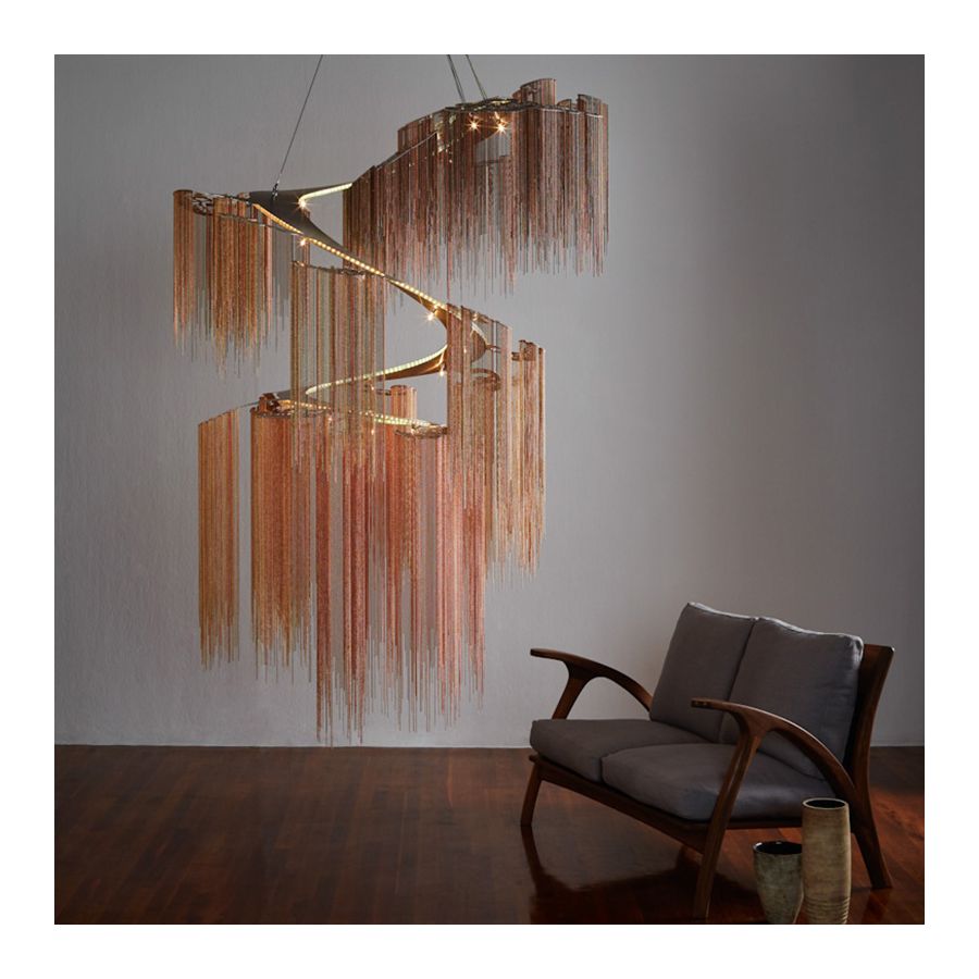 A design which is based on part of a massive tree forest installation. This is an evolution of our enchanted faraway tree which fuses all the branches into a single elegant spiraling frame. Illuminated by 18 surface mounted G4 Halogen or LED lamps as well as a 10m long LED strip.