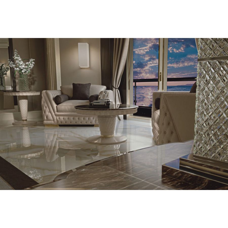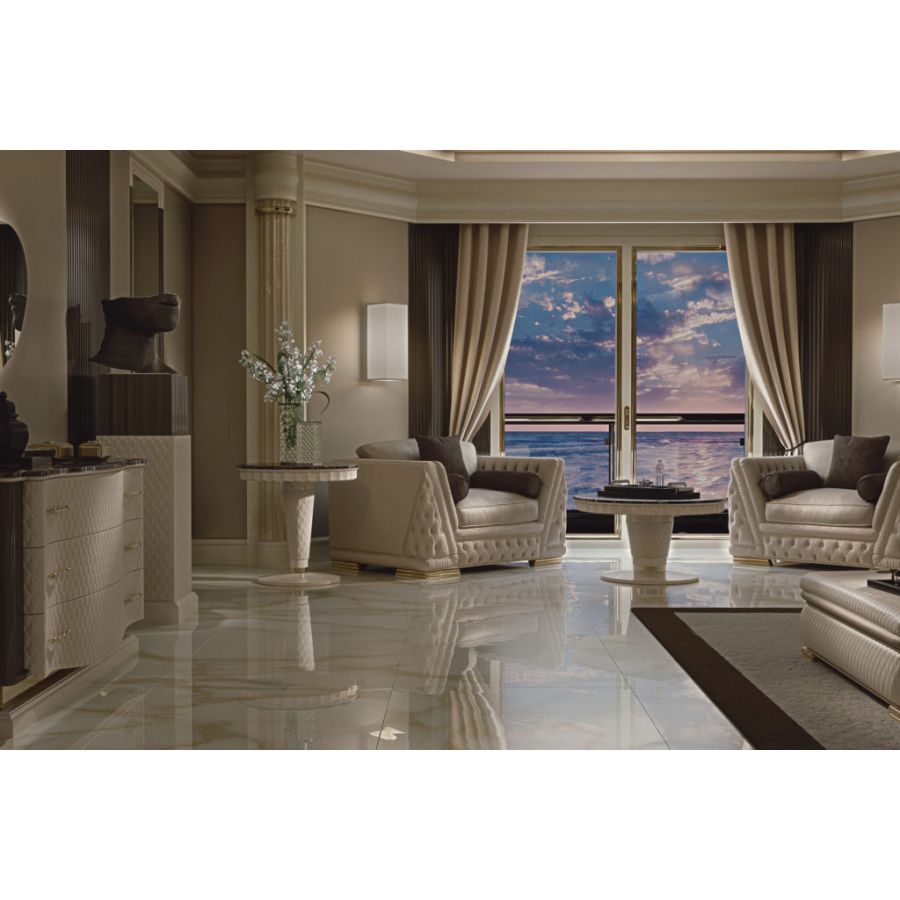 The Jade armchair is an elegant design element available in all fabrics and leathers of the sample collection. Jade is characterized by a solid wood frame, traditional hypoallergenic padding and cushions filled with goose down with polyurethane insert.