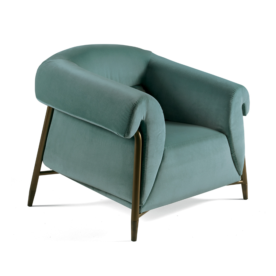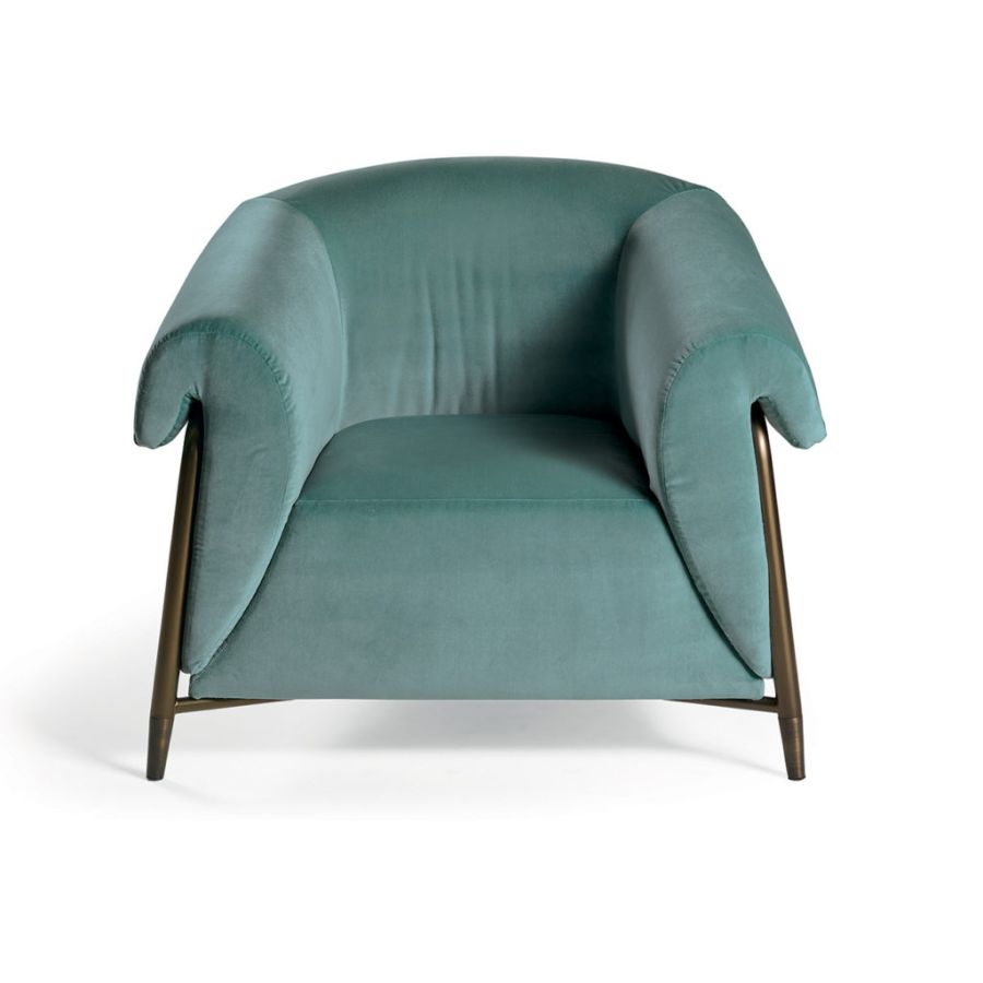 ESTER is an elegant upholstered armchair with an external structure in bronzed metal. Its unique lines make it a distinctive complement, ESTER is born from the encounter between the use of innovative techniques in the production of high quality complements and ancient Italian manufacturing tradition.