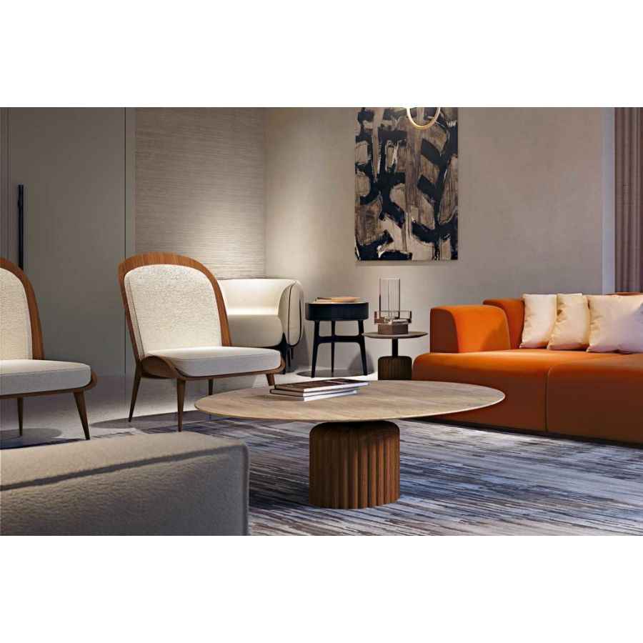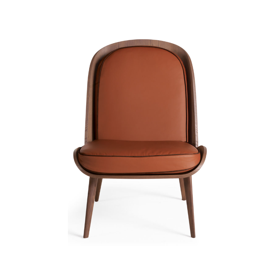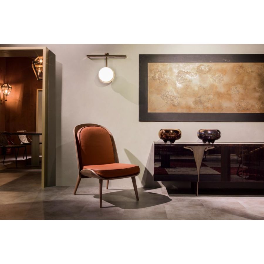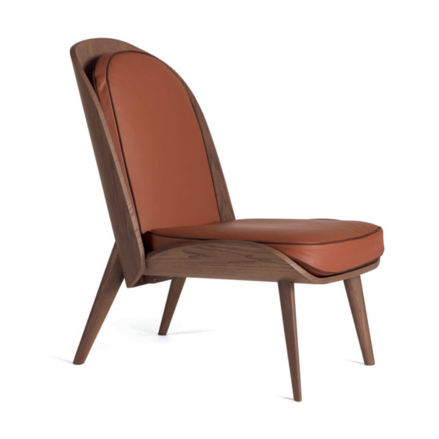 HARMONY takes its name from the harmonious design that characterizes it. The most exclusive part of this piece, its solid wood structure, includes four short oblique legs that support a slightly curved seat and a long and welcoming backrest. The backrest and seat of this armchair are in goose down with an insert in non-deformable polyurethane foam.