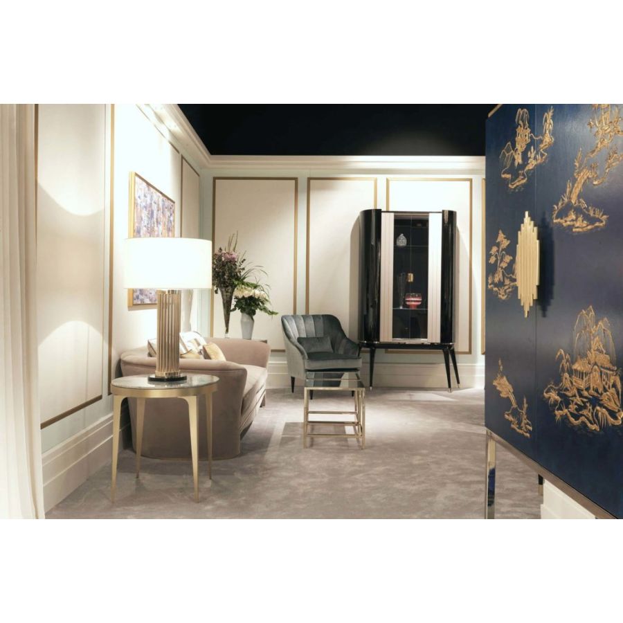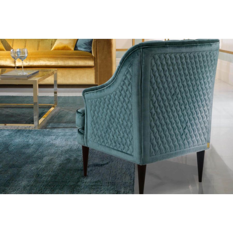 Elegant armchair with a contemporary design and refined handcrafted embroidery. MICHELLE is an iconic complement with an exclusive design proudly signed ZANABONI.
