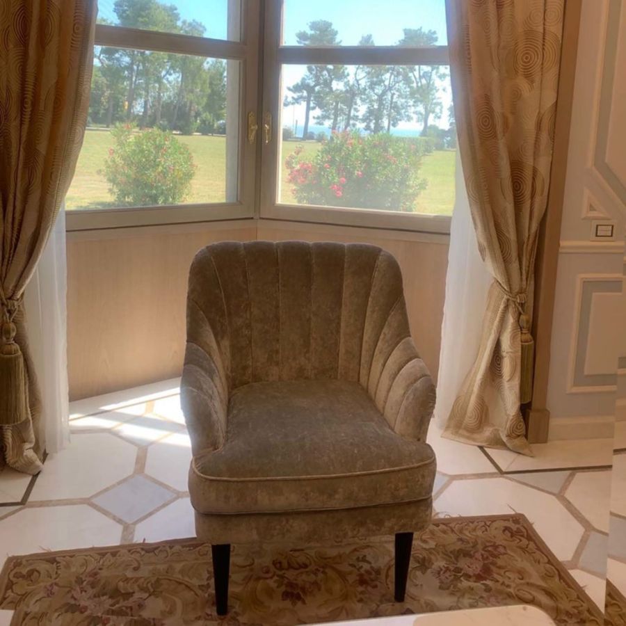 MICHELLE is an armchair with a refined design enriched by pretty embroidery on the backrest and side areas.