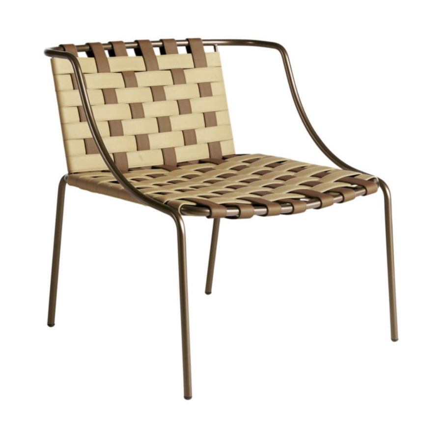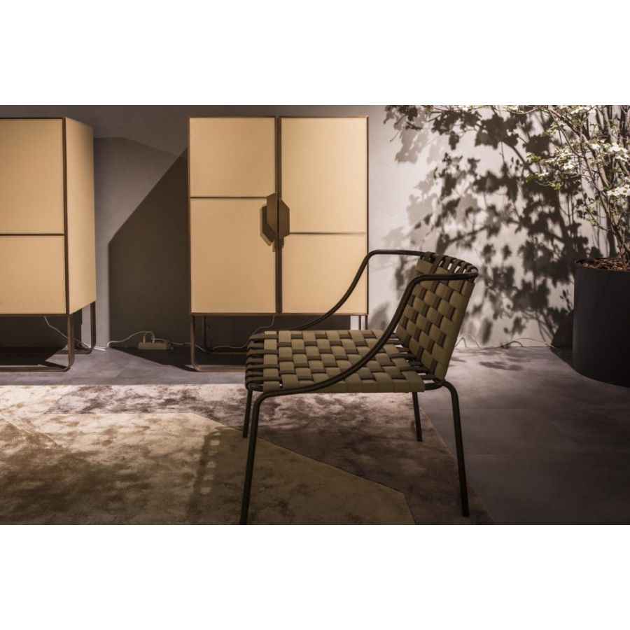Elegant modern outdoor style armchair with seat composed of woven bands. SUNRISE is available in different materials depending on the needs of use. This armchair is an interesting design element capable of harmoniously coexisting in indoor and outdoor settings.
