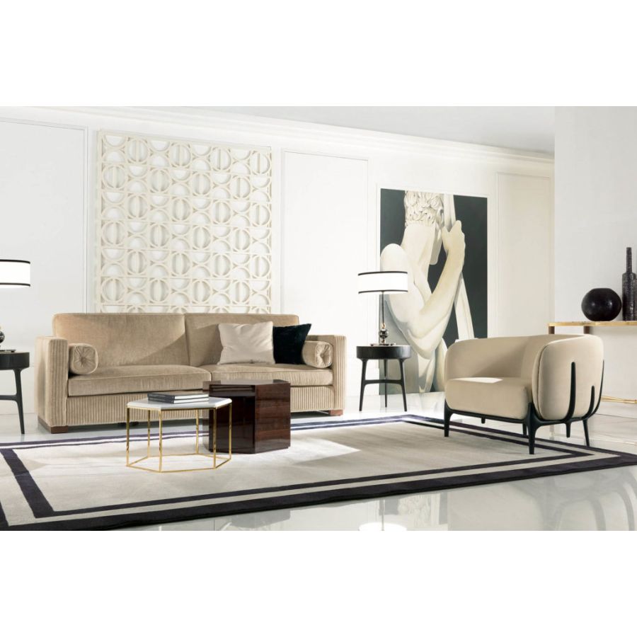 BLANCA is an elegant armchair in a contemporary style with a very refined innovative design. This splendid designer armchair is characterised by a magnificent wooden structure enriched by structural decorative elements that envelop its padding. The BLANCA armchair, with its decisive style, manages to give the entire environment that hosts it character and personality.