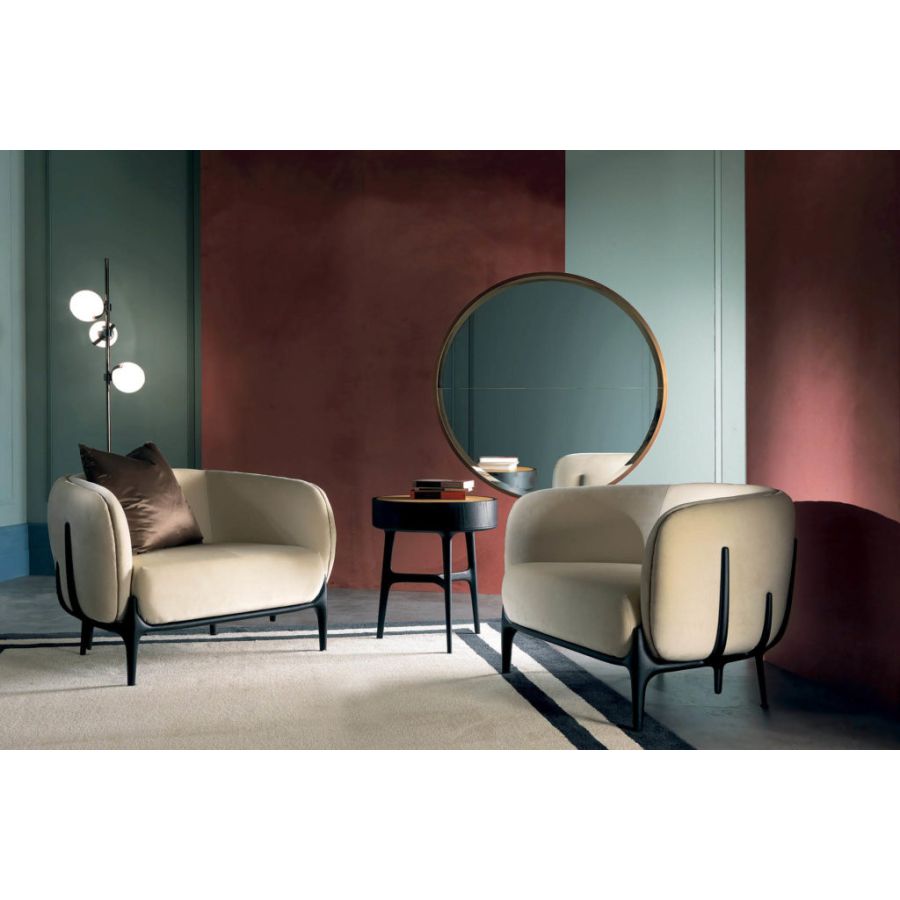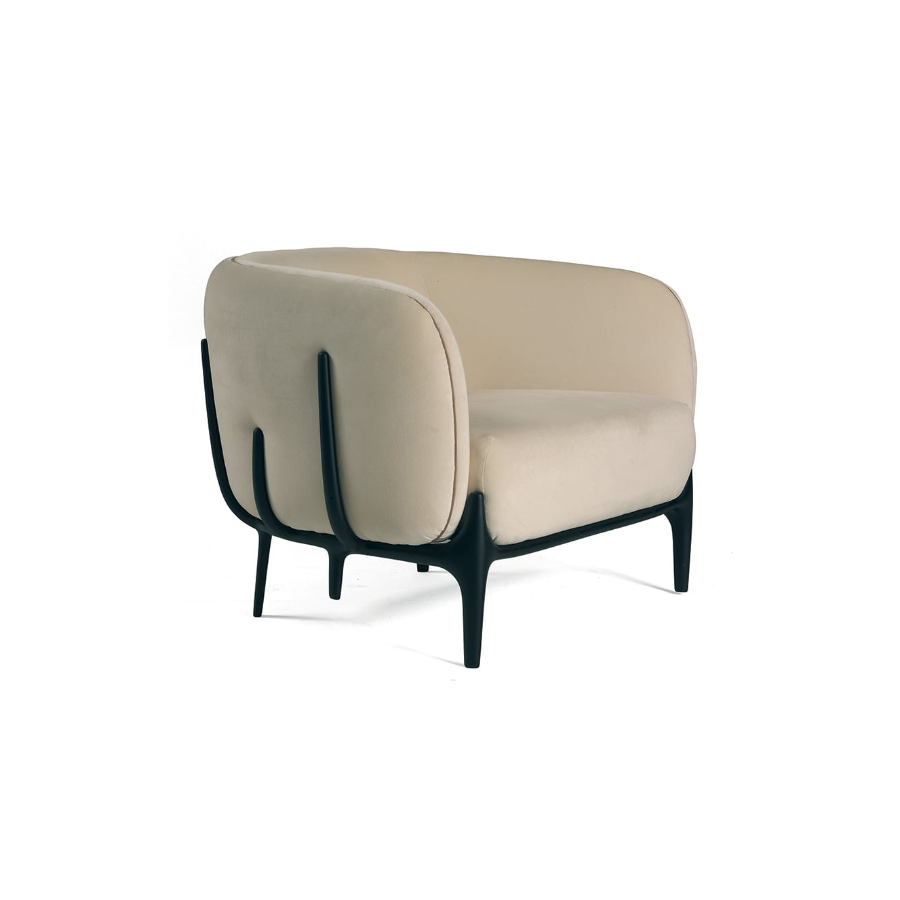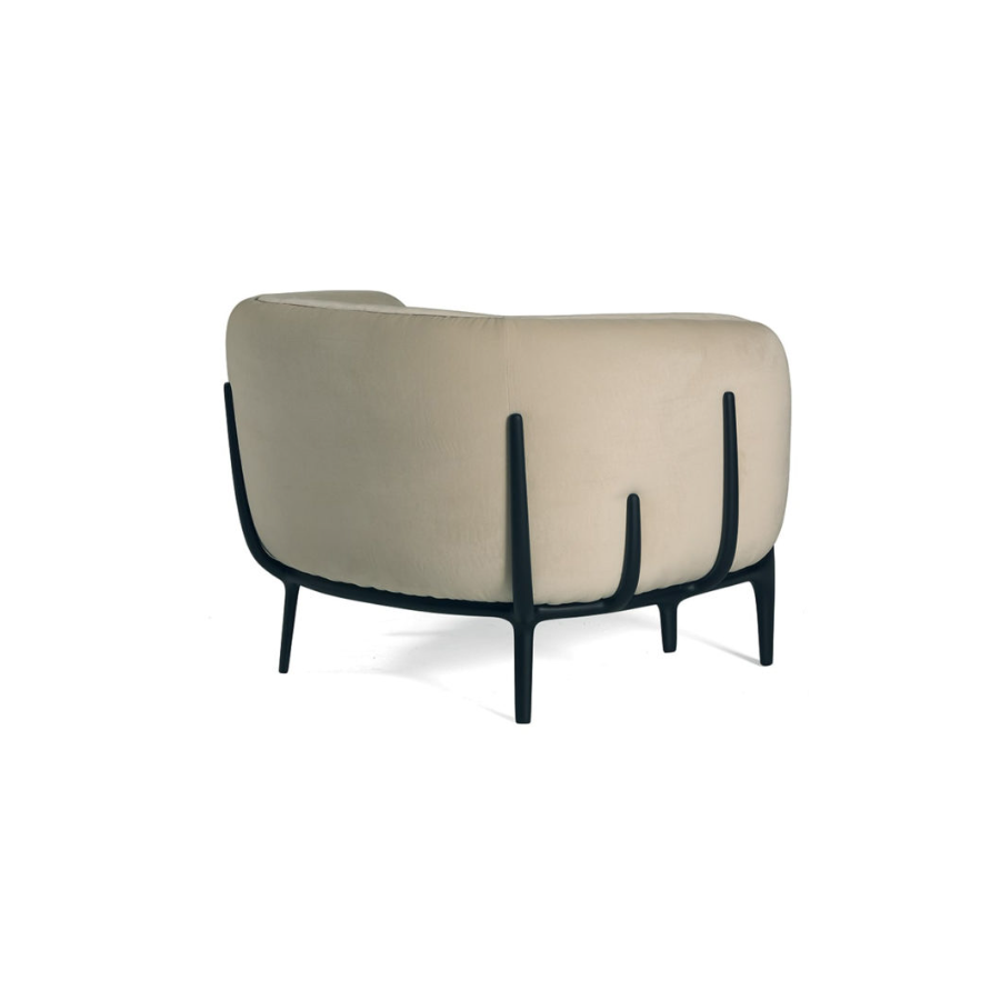 BLANCA is an elegant padded design armchair with an enveloping shape. Its black stained ash structure makes it an element of great appeal, an interesting design element capable of giving character and personality to the entire environment.