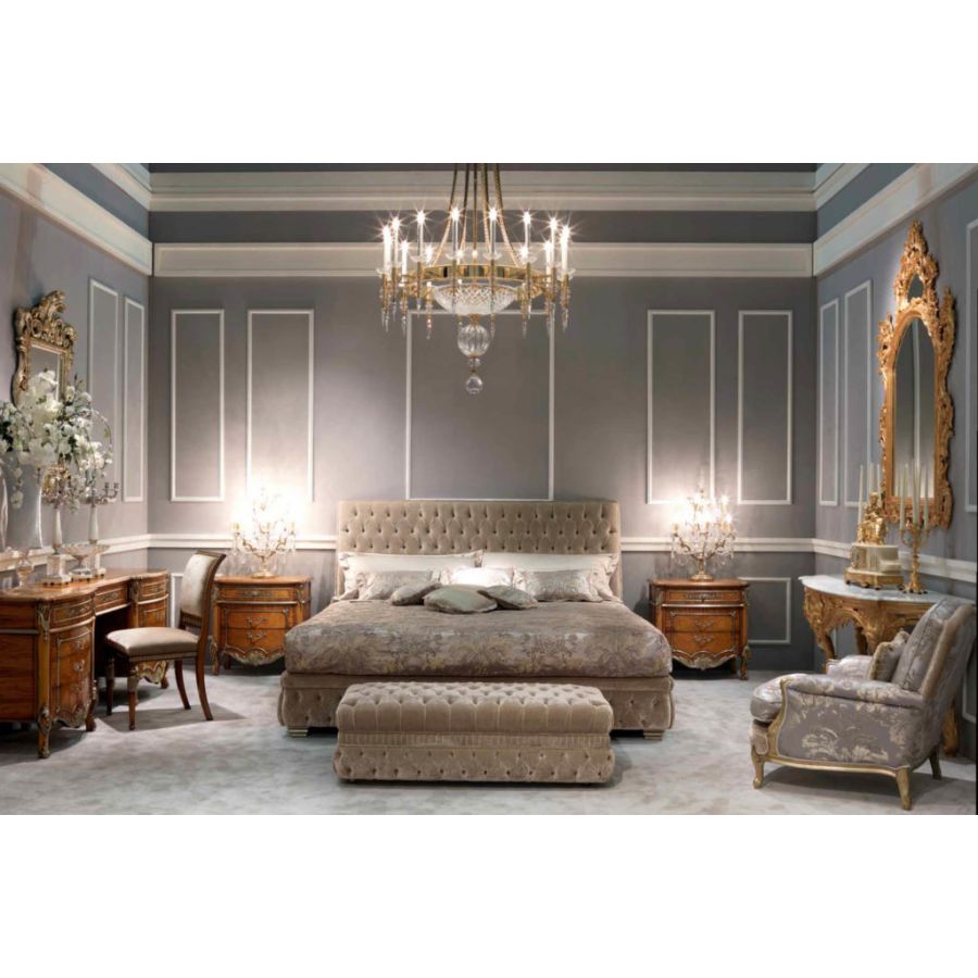 Elegant classic style bed with capitonné headboard and bed frame. The CAPRI bed is the result of research and tradition, its style reveals the true spirit of high quality classic furniture.