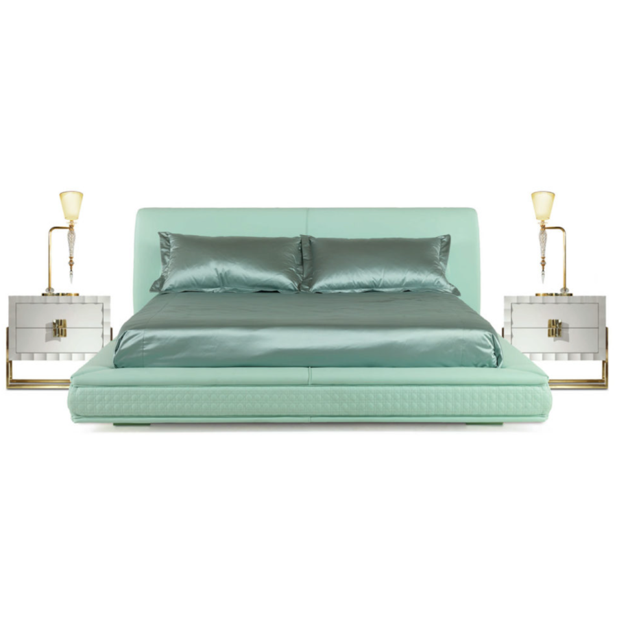 Elegant bed with embroidery with an iconic and contemporary design featuring sophisticated embroidery across the entire surface of the bed frame.