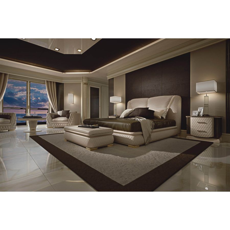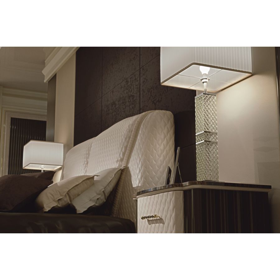 Elegant contemporary style bed with padded headboard featuring elegant quilting. GIADA is a true masterpiece of artistic craftsmanship made in Italy that is born from the long work of master craftsmen with decades of experience.