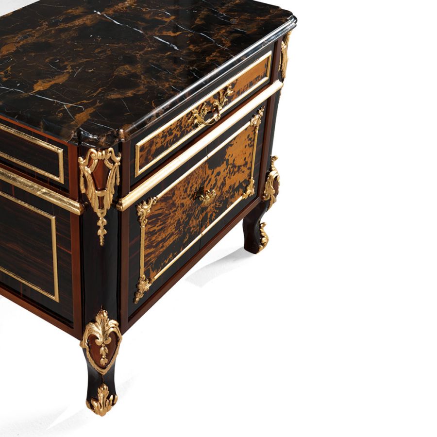 Elegant bedside tables in classic style with marble tops, unique and exclusive works, timeless protagonists of a luxurious and refined elegance, the result of the expert work of master craftsmen who pass down the secrets of artisanal workmanship, and of the collaboration with some of the most brilliant architects established at a national and international level.