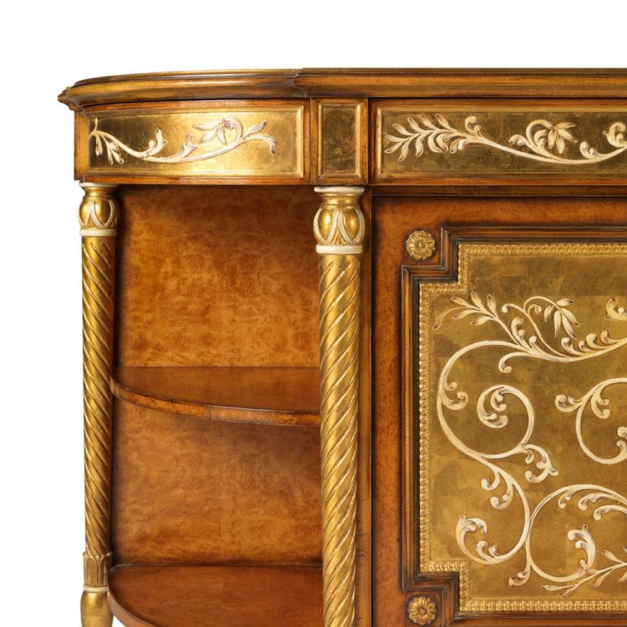 Classic style sideboard in briar and gold leaf decorated by hand . Its handcrafted workmanship according to the Brianza tradition gives this complement a unique and personal touch that makes its beauty timeless and classic forever.