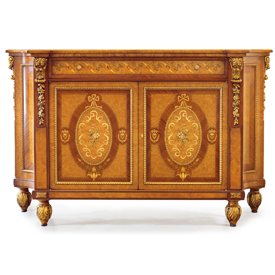 Classic style sideboard inlaid in myrtle burl and mahogany with gold details. B/4611 is a refined storage unit capable of enriching the environment with class and elegance. B/4611 is the result of research and tradition, from its style emerges the true spirit of high quality classic furniture . B/4611 is finished with fine materials based on ancient artisan techniques handed down over the years from father to son.