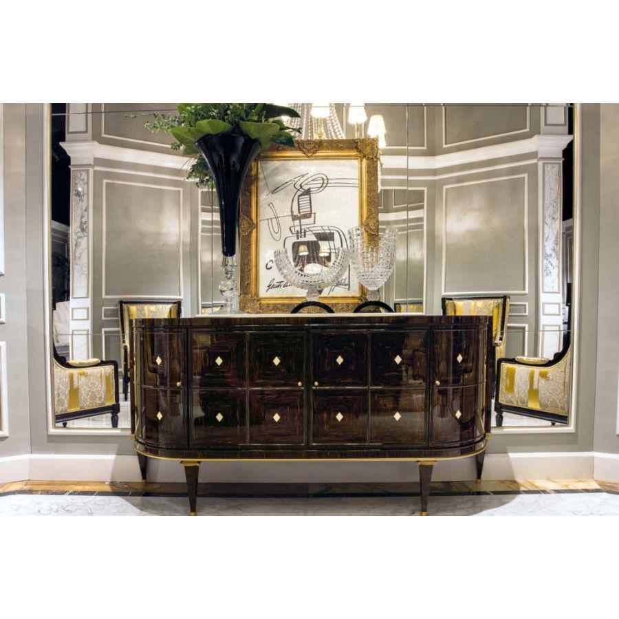 Beautiful classic style sideboard adorned with absolutely elegant combinations. Its handcrafted workmanship according to the Brianza tradition gives this complement a unique and personal touch that makes its beauty timeless and classic forever. Its sophisticated details in bone and bronzed brass together with its elegant marble top make it a unique, exclusive and highly valuable artisan complement.