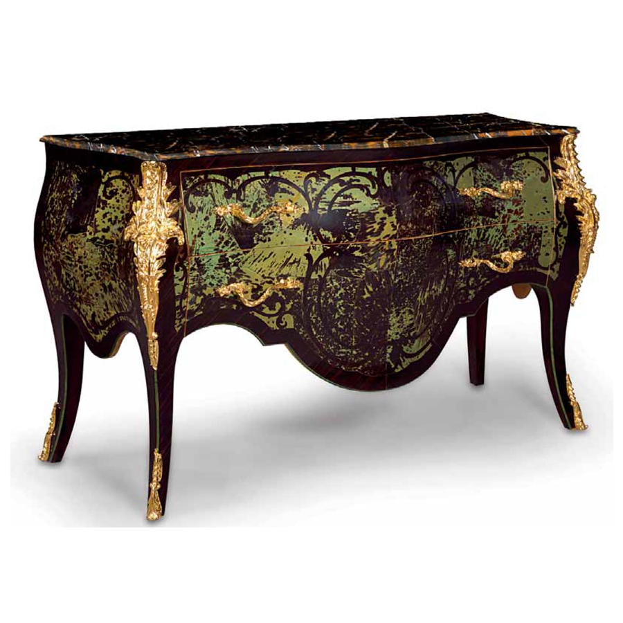 The classic-style living room cabinet W019 is inspired by the masterpiece by Heinrich Wilhelm Spindler Junior “turtle coated” created in 1765 by order of Frederick the Great for the NEUES PALAIS residence in Potsdam.