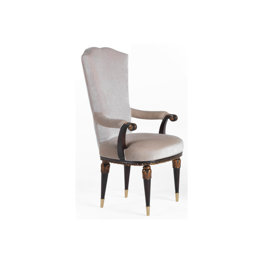 Elegant padded chair in neoclassical style adorned with combinations of absolute elegance. Its handcrafted workmanship according to the Brianza tradition gives this complement a unique and personal touch that makes its beauty timeless and classic forever.