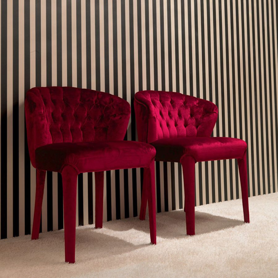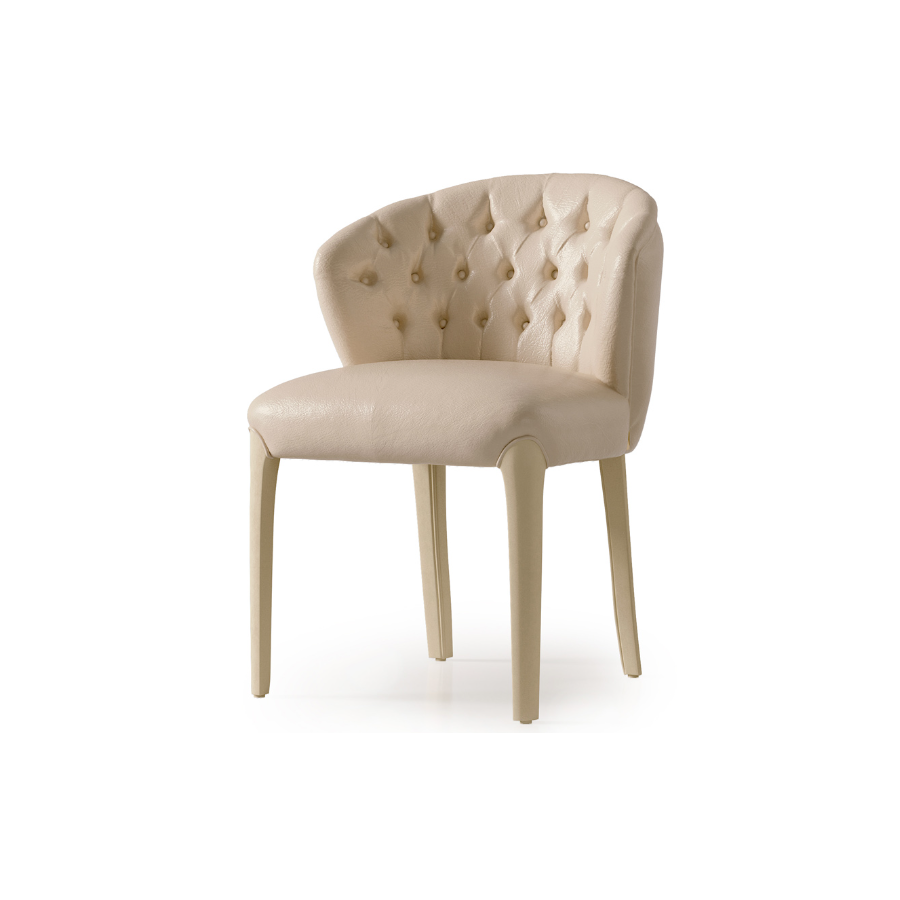 Elegant armchair with capitonné backrest available in two versions: P179 standard completely upholstered in fabric, P179/W with upholstery only on the backrest and seat cushion. The upholstery of the P179 chair is available in all fabrics and leathers in the sample collection.