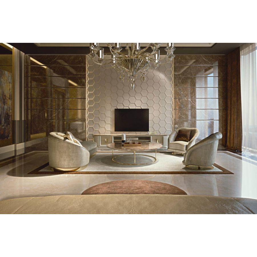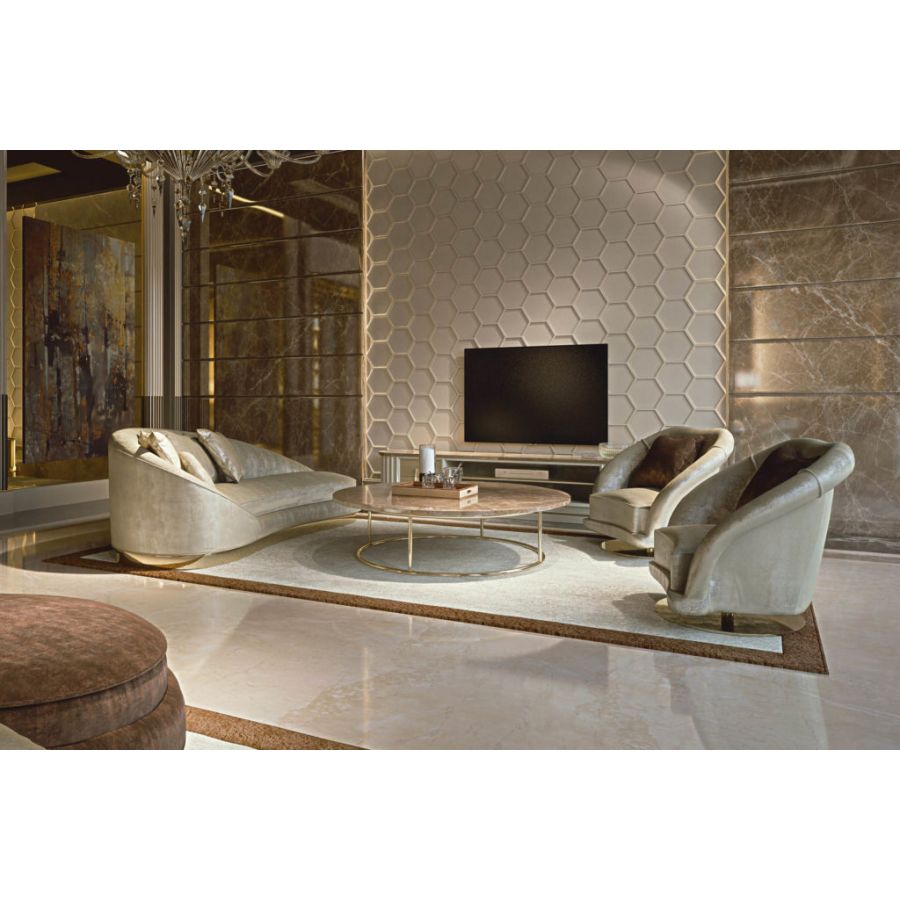 Sophisticated 100% made in Italy daybed characterized by a contemporary design and a shining base with a precious finish. Its glamorous and trendy style allows it to coexist harmoniously in different types of settings: from the most in living rooms to the most sophisticated offices. The elegant ASTRID daybed is proposed in coordination with the swivel armchairs of the same name.