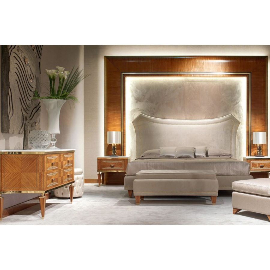 Chest of drawers veneered in citronnier wood made with high-quality and fine materials. An iconic complement with an exclusive design proudly signed by ZANABONI. W038/CH is offered together with the W038/NT bedside table.