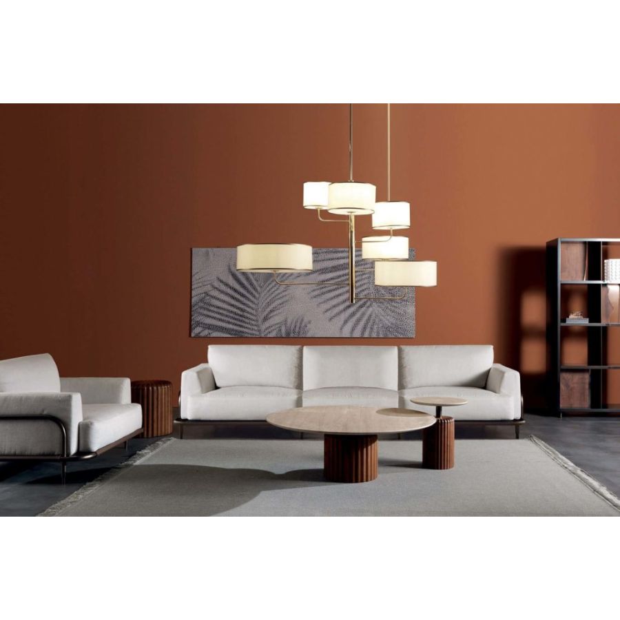 Sophisticated set of coffee tables in modern style with solid ash base, bronzed metal structure and Travertine marble top. The elegance of the lines, the combination of fine materials and colors make the BABYLON coffee table set a product with a unique style capable of giving character to the entire environment.