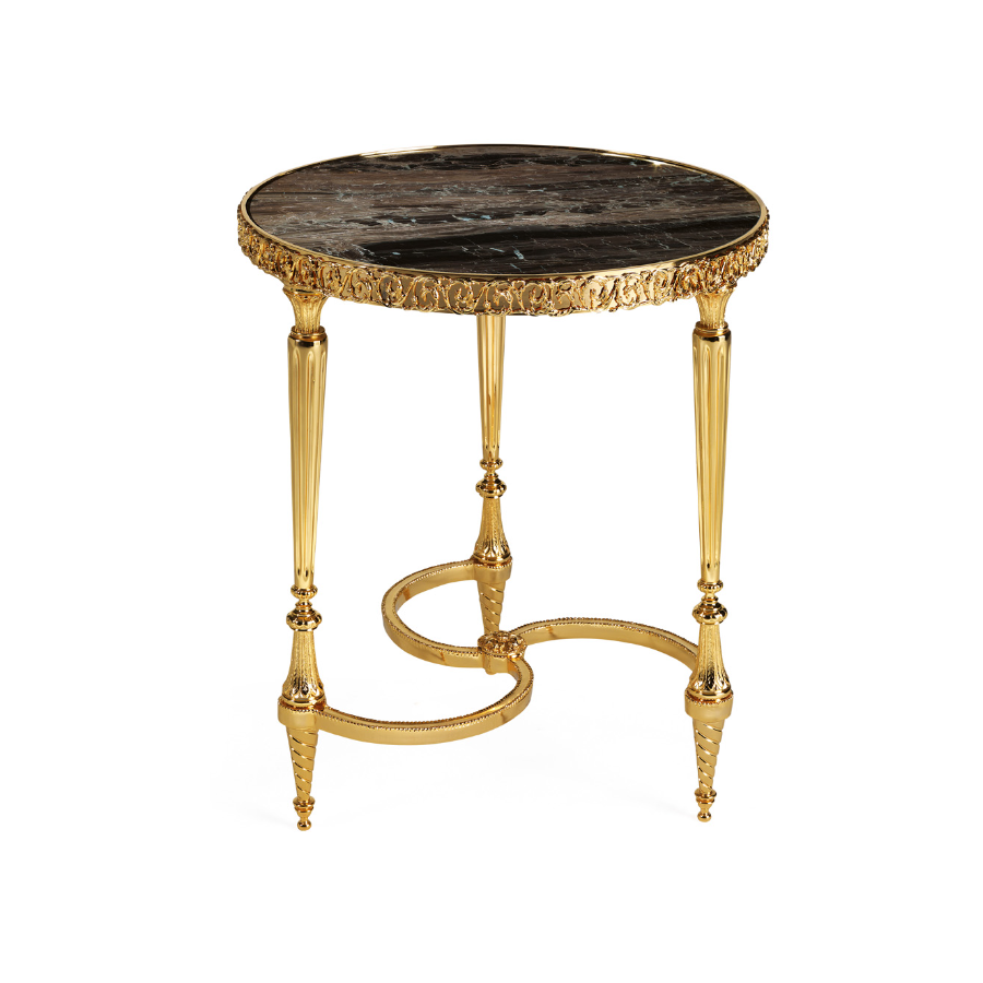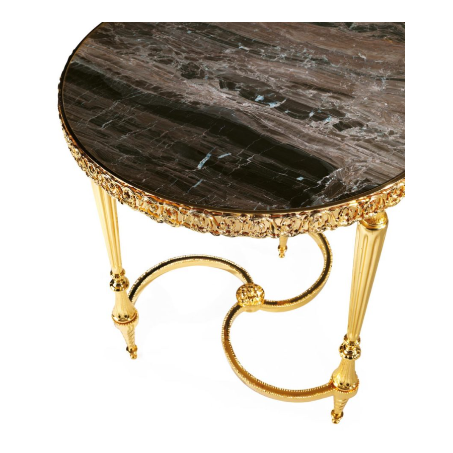 Classic style side table with marble top and brass frame. T176 is a true masterpiece of artistic craftsmanship made in Italy that is born from the long work of master craftsmen with decades of experience.