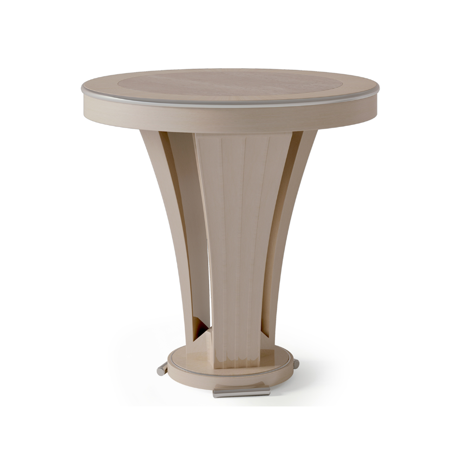 Sophisticated side table with a circular top and a high-impact design. Its pleasant style is the result of careful research that resulted in a harmonious union between present and past, tradition and innovation.