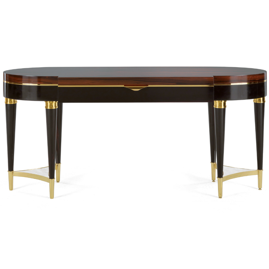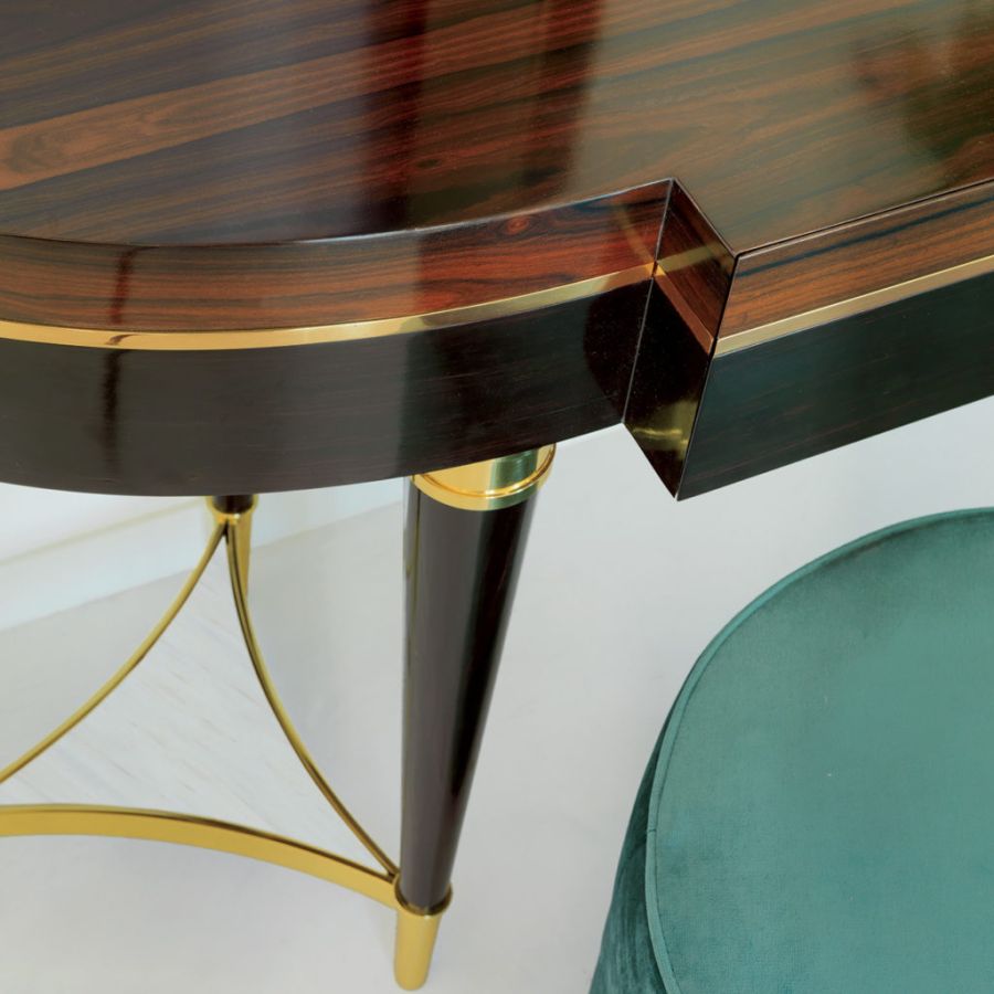 Contemporary style dressing table in ebony, ziricote, brass with marble inserts in an exclusive style, a true masterpiece of artistic craftsmanship made in Italy that is born from the long work of master craftsmen with decades of experience.
