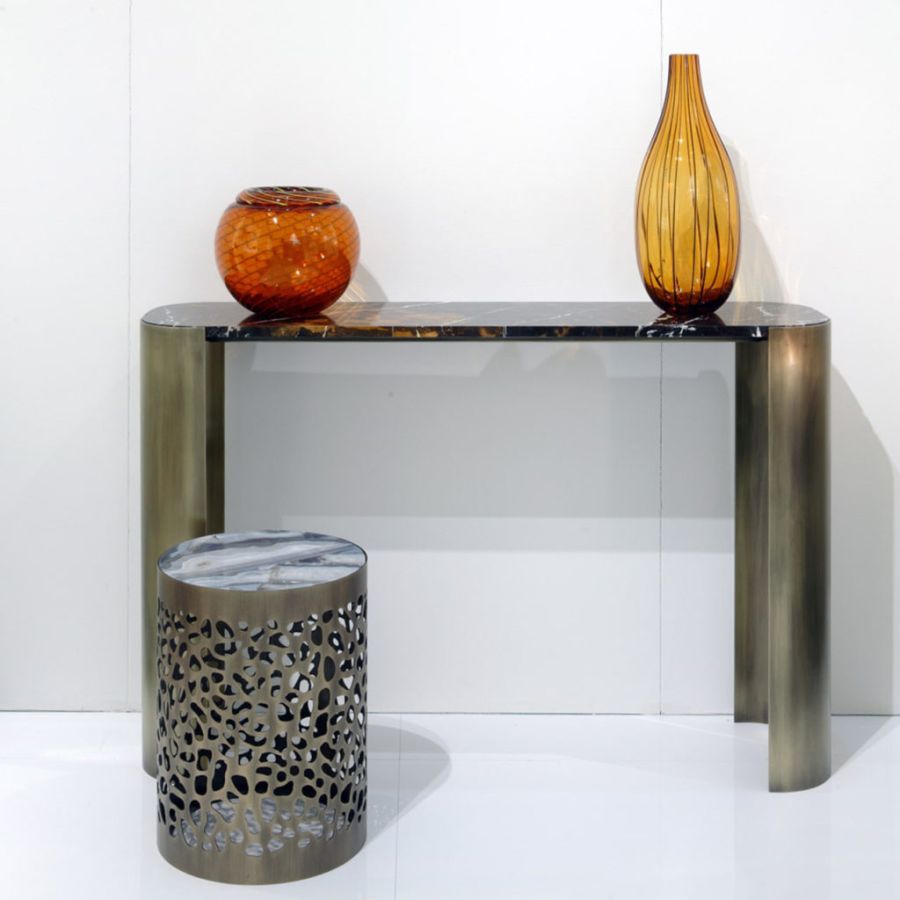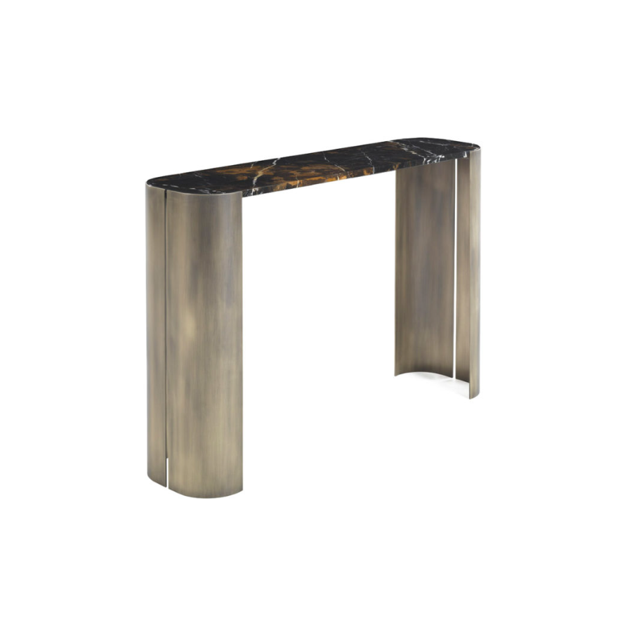 Console 120 cm wide, 30 cm deep, 80 cm high with bronzed metal structure and marble top. With the same design, to match the console, you can request the central table MATERPIECE and the bed of the same name characterized by the same modern style structure with bronzed finish.