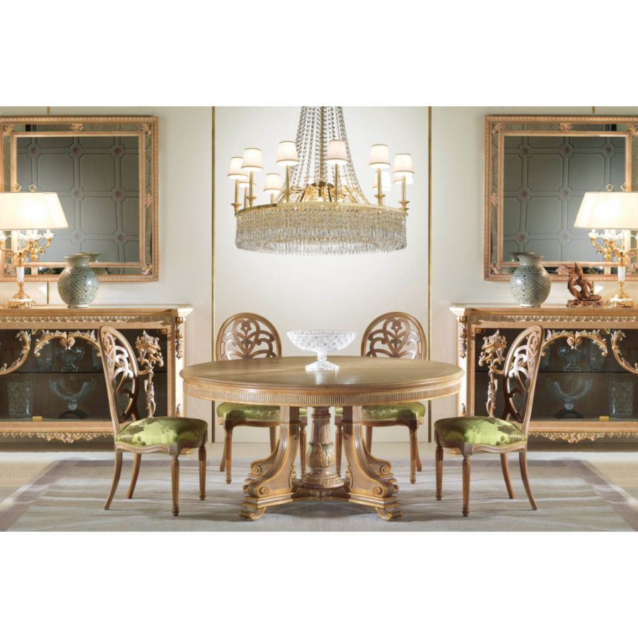 Elegant classic style dining table featuring an elegantly carved foot according to the Brianza artisan tradition. For an optimal setting of the classic style dining room, it is recommended together with the S/700 chairs.