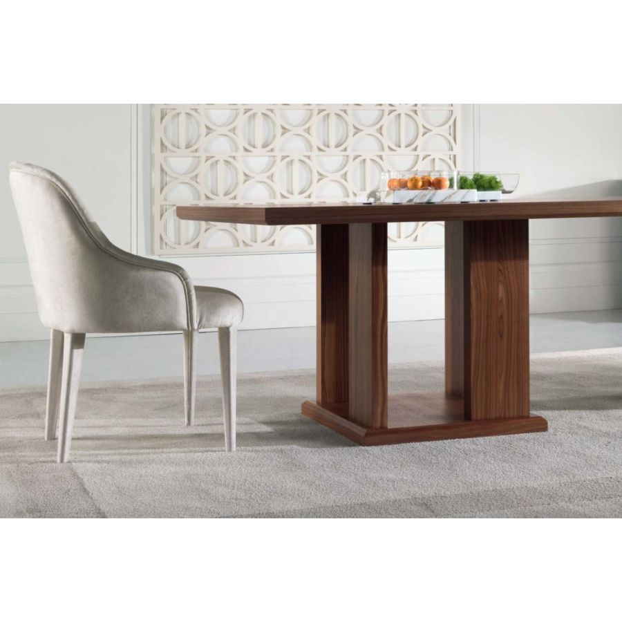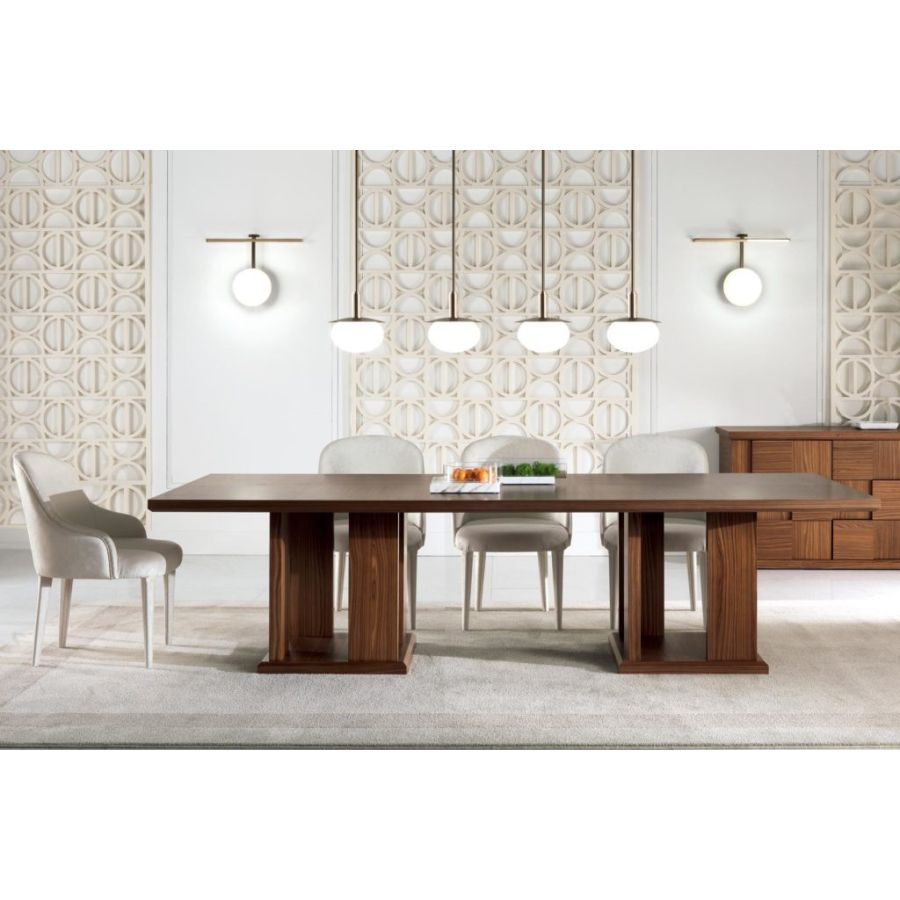 Large and elegant dining table in matt canaletto walnut with a modern design. The lines that outline the table and its sturdy solid wood legs define its sophisticated elegance.