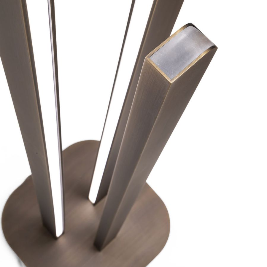 Set of modern style lamps featuring a linear and geometric design with a bronze finish.