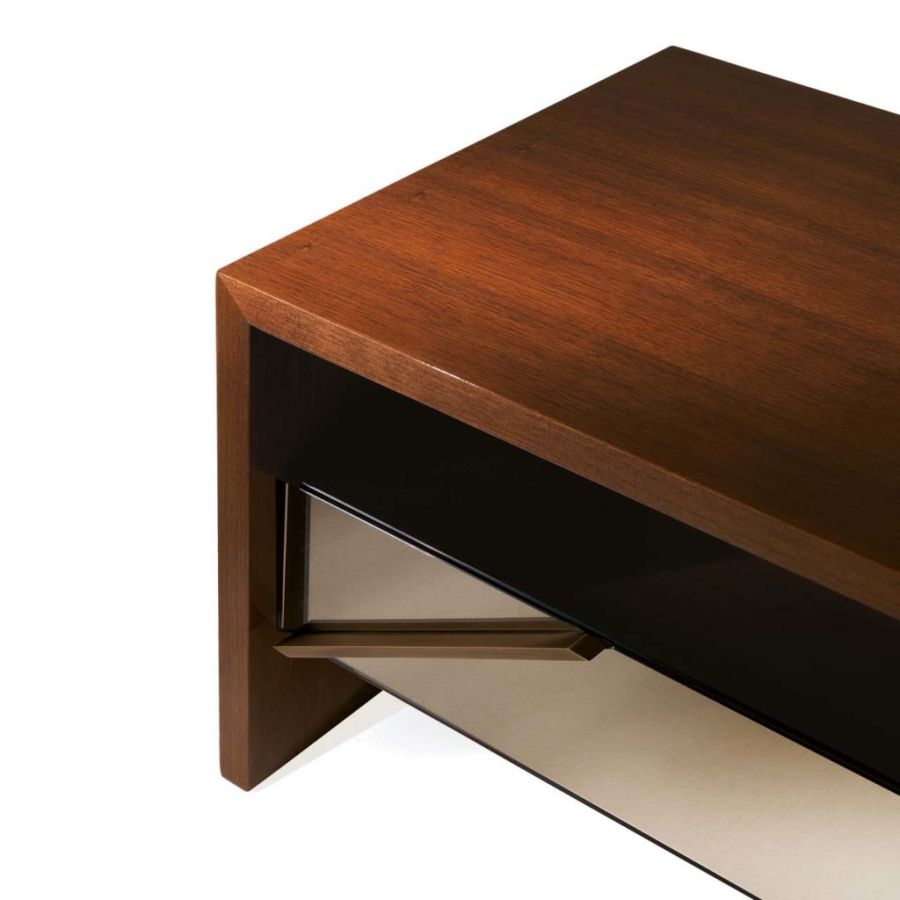 TIME BREAK is a modern bedside table in polished canaletto walnut with a minimal and sophisticated design and bronzed metal details. The lightness of its structure decisively expresses the great versatility of the entire TIME BREAK line.