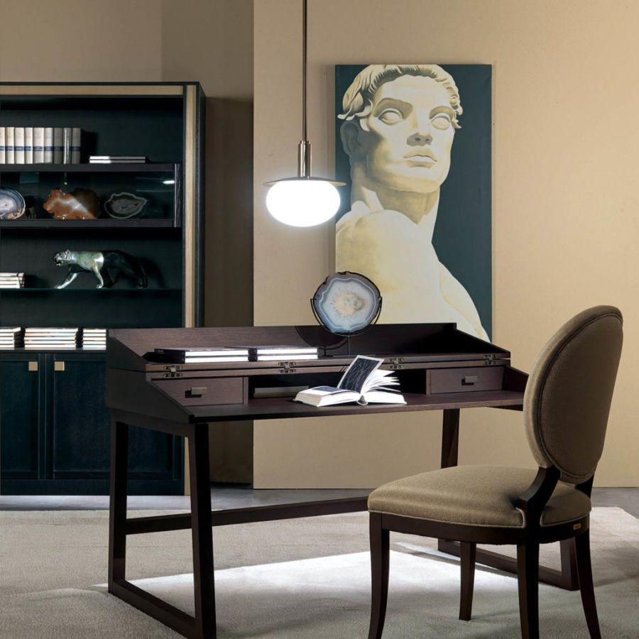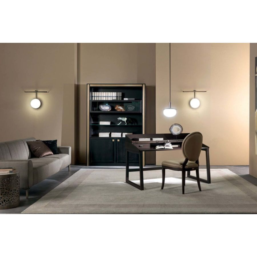 DOWNTOWN is an elegant bookcase with four large open shelves and two closed doors. The elegance of its design and the preciousness of its details make it a precious piece of furniture, a real touch of class to enrich the living room with elegance and refinement.