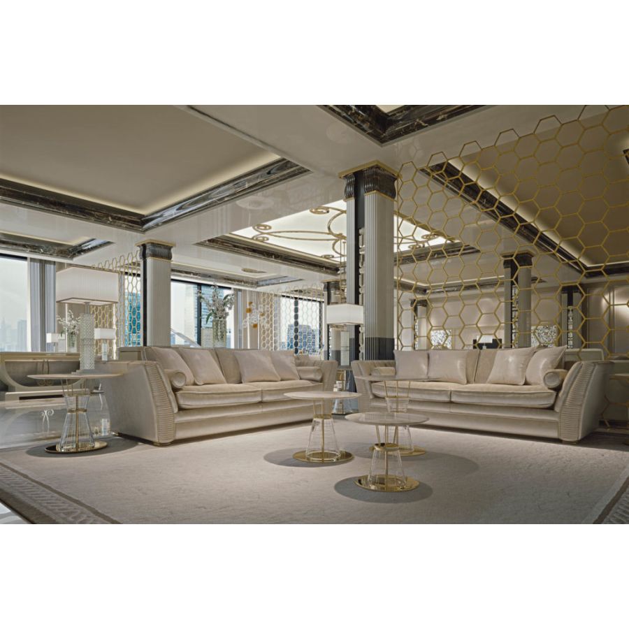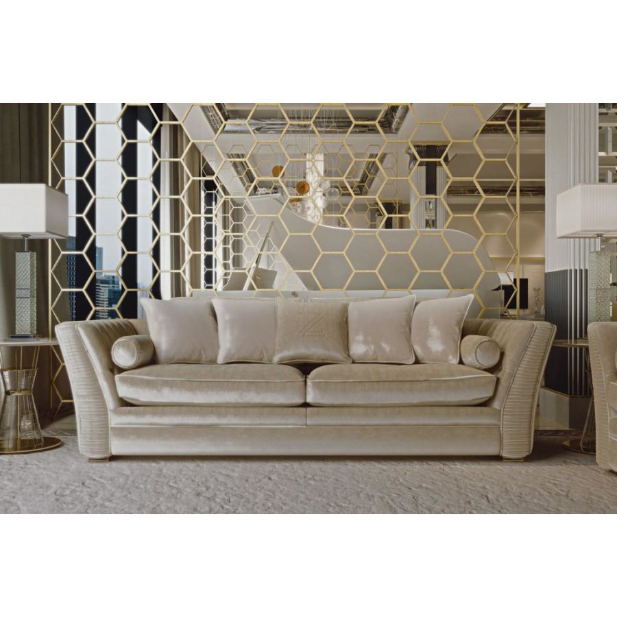 The elegant AMALFI sofa has an elegant design, a sturdy solid wood frame, traditional hypoallergenic padding and charming goose down filled cushions. AMALFI is also available in the 2-seater, 4-seater, armchair and pouf versions. Its pleasant design is the result of careful research that has resulted in a harmonious union between present and past, tradition and innovation. Its apparent simplicity hides its great design complexity. Its style represents a vision: the art of living through furniture and accessories in which design, style, material, new workmanship and tailoring create new aesthetic codes.