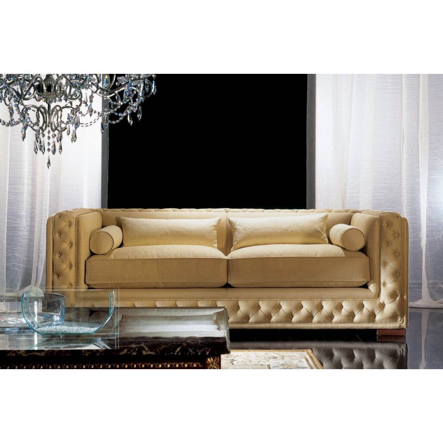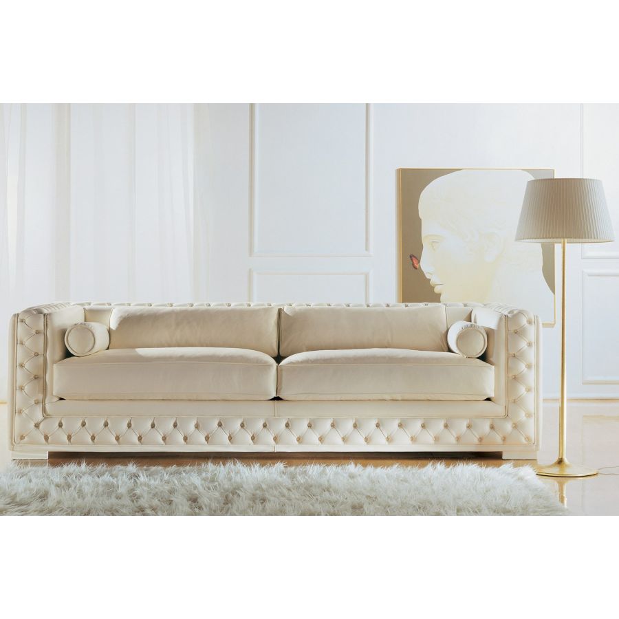 Elegant designer sofa characterized by square shapes and capitonné style covering on the entire external frame of the armrests and backrest. A timeless classic with extraordinary versatility. The great refinement of this complement allows it to coexist in harmony with complements belonging to other styles. With the ATLANTIQUE sofa it is possible to compose personalized compositions.