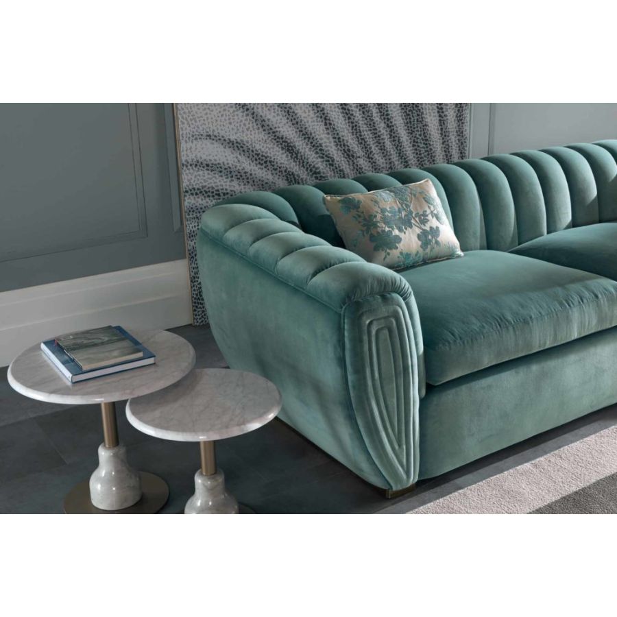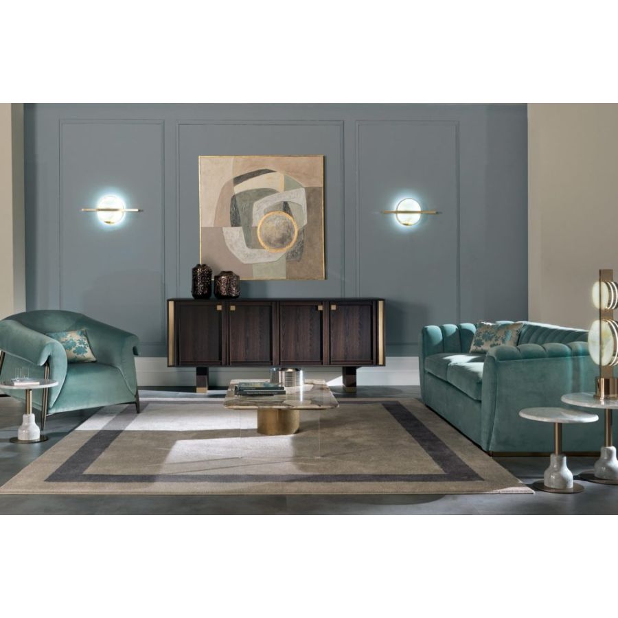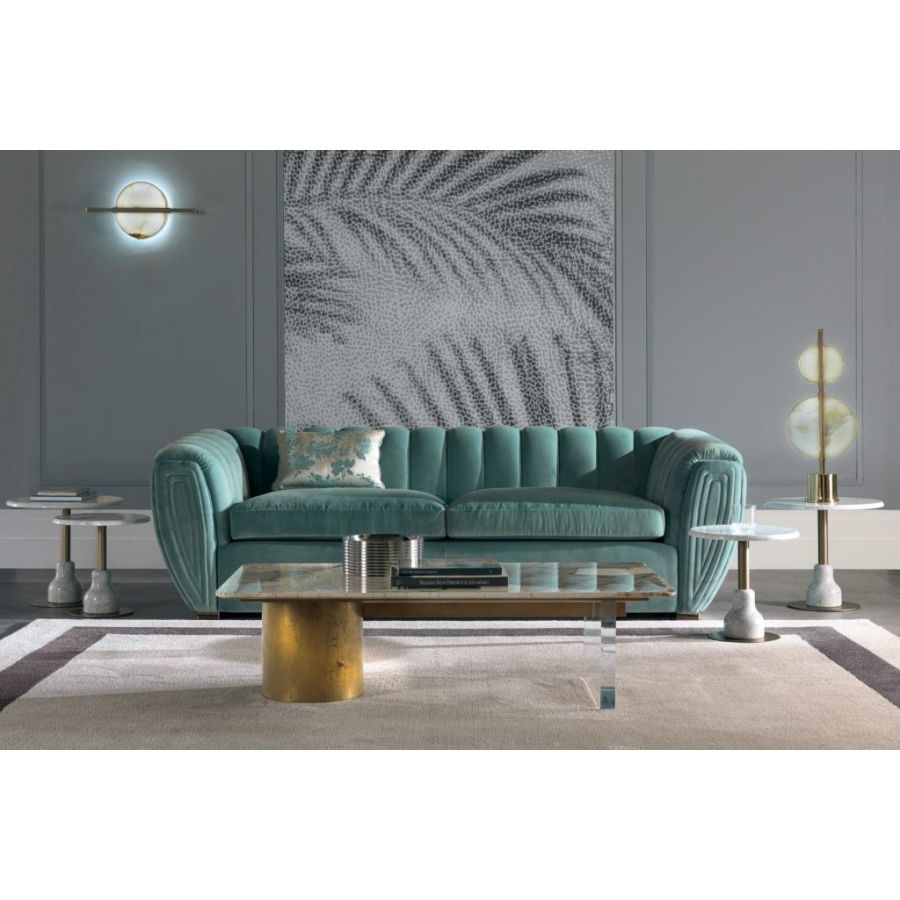The BUTTERFLY sofa, with its glamorous decorations, expresses the values of contemporary style . The handcrafted embroidery on the backrest enriches the seat. Its style represents a vision: the art of living through furniture and accessories in which design, style, material, new workmanship and tailoring create new aesthetic codes. The BUTTERFLY sofa is also available in the 2-seater, armchair and pouf versions.