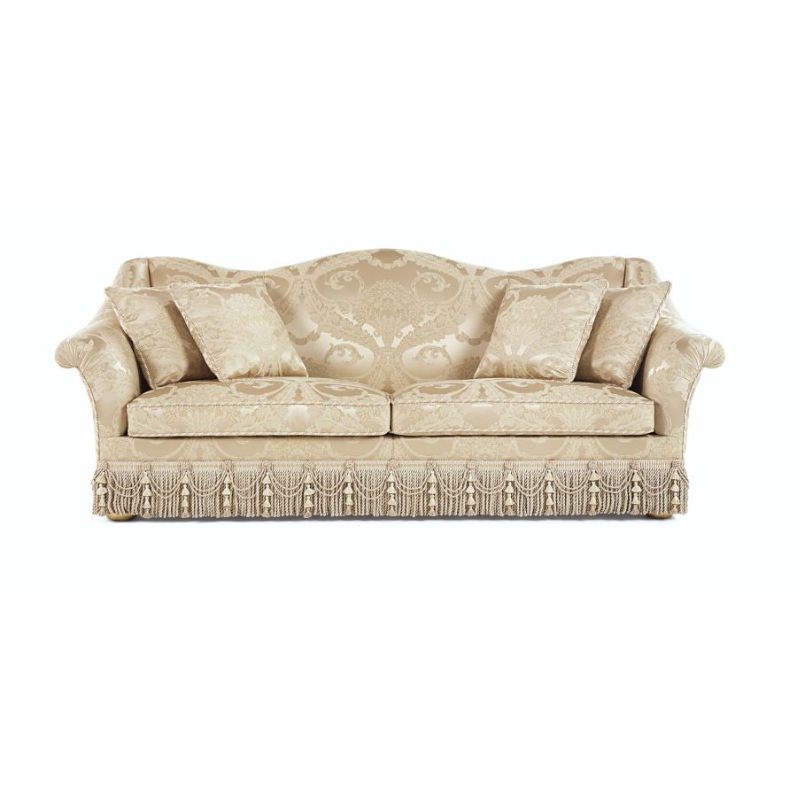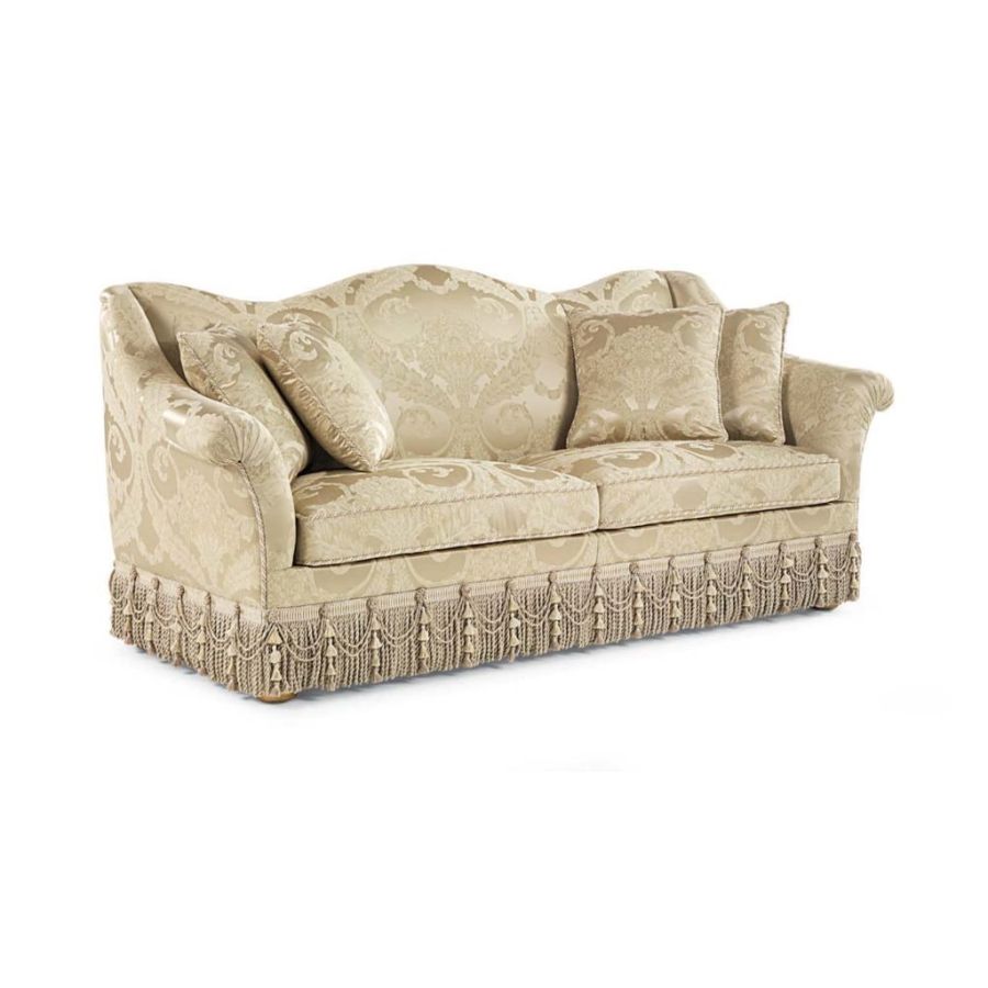 Refined classic-style sofa with fabric upholstery complete with fringes covering the feet, a true masterpiece of artistic craftsmanship made in Italy that is born from the long work of master craftsmen with decades of experience.