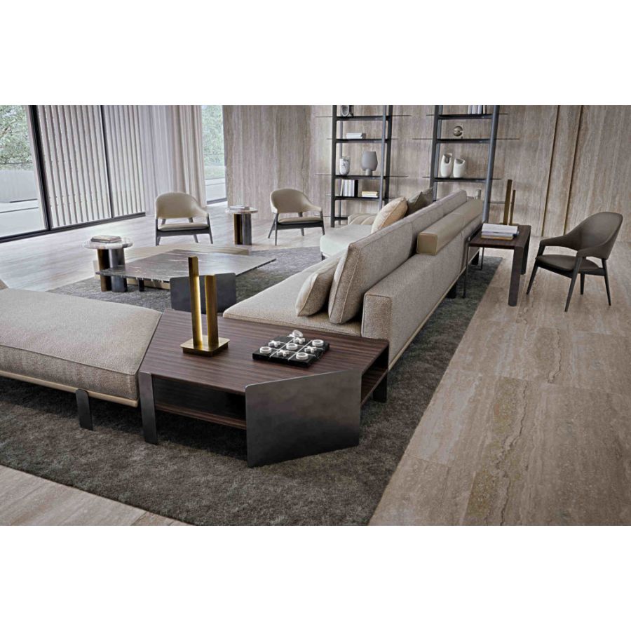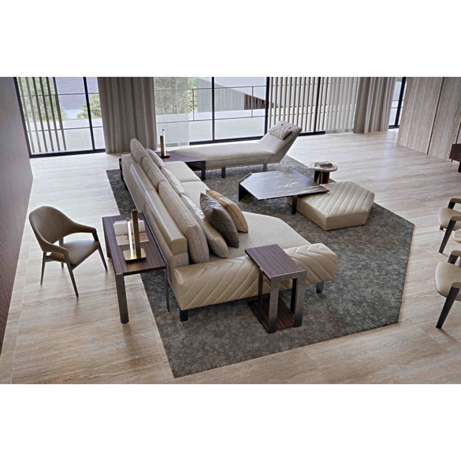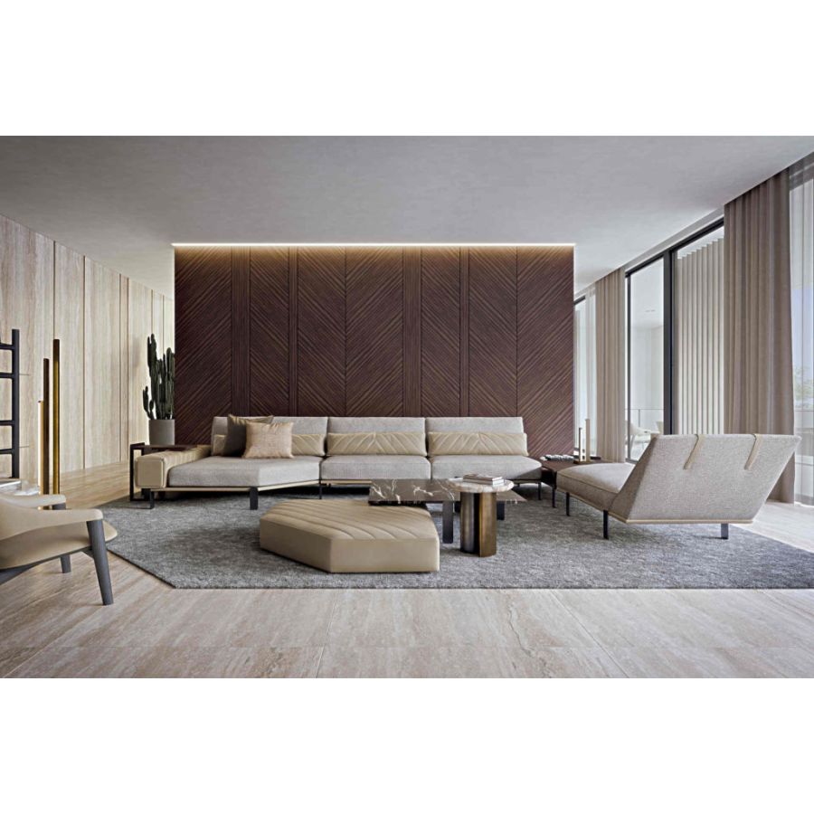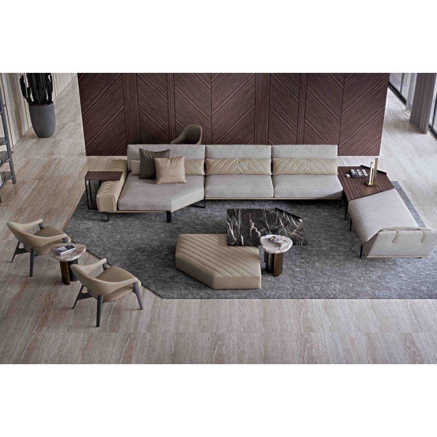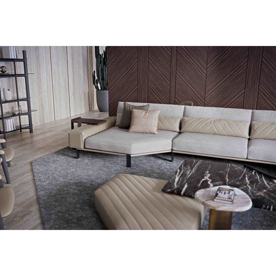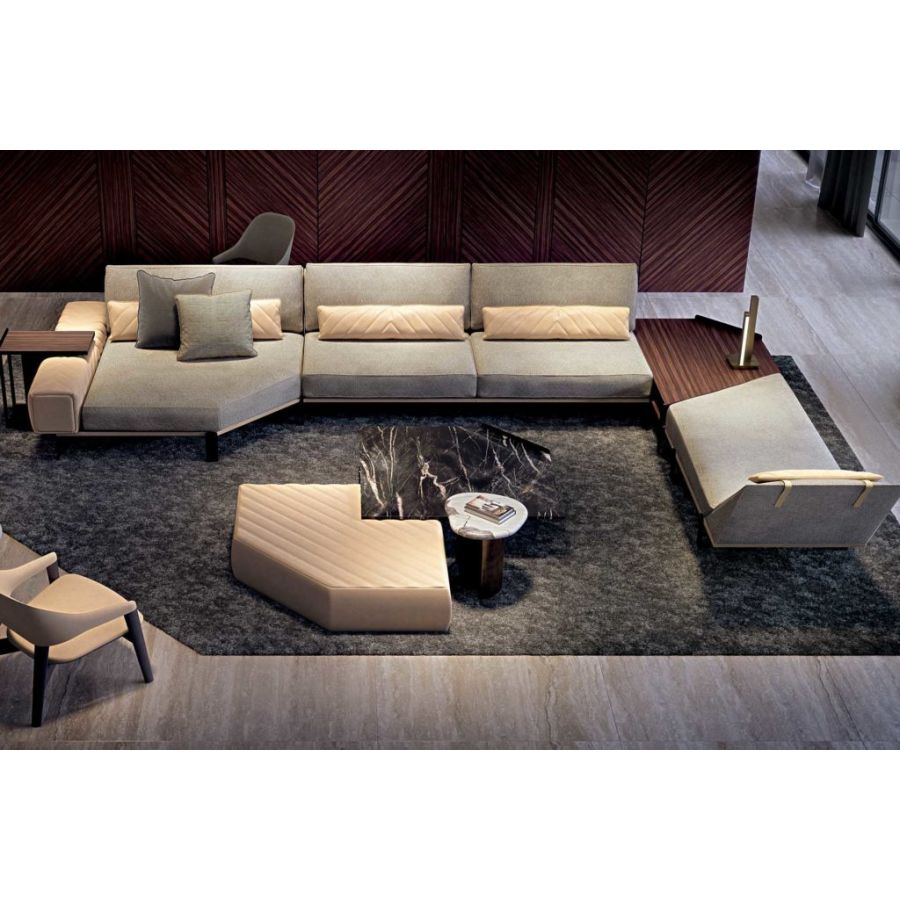 FREDDY is a modern style sofa characterized by an elegant combination of leather and fabric elements. Available in a fixed or modular version, FREDDY is an iconic sofa full of details such as the quilting repeated in the armrest and in the backrests.
