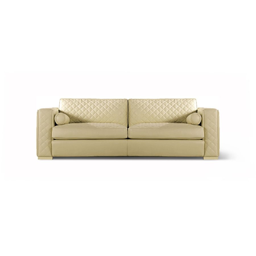 Contemporary style sofa available in three-seater, two-seater, armchair and pouf versions featuring elegant quilting on cushions and armrests. Its design is the result of careful research that resulted in a harmonious union between present and past, tradition and innovation.