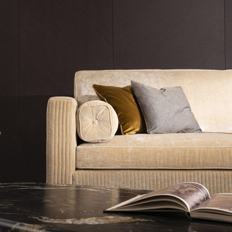 The MONTENAPOLEONE sofa expresses with its clean and elegant design the values of contemporary style , which offers innovative designs while remaining faithful to traditional artisan production techniques and the use of the highest quality materials. The artisanal embroidery on the structure enriches the seat. MONTENAPOLEONE also available in the 2-seater and armchair versions.