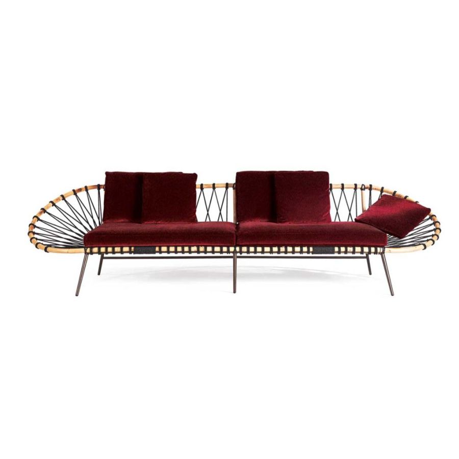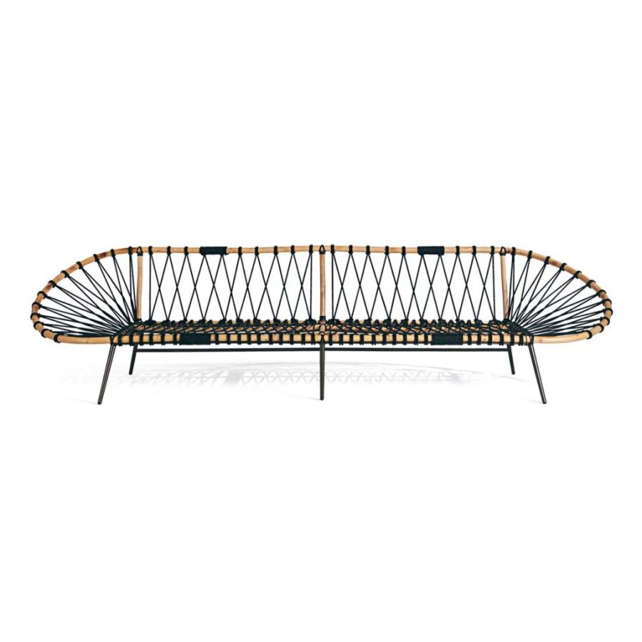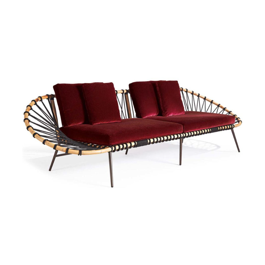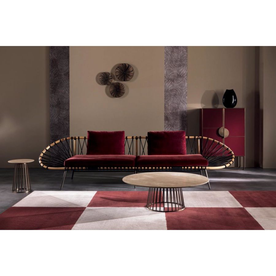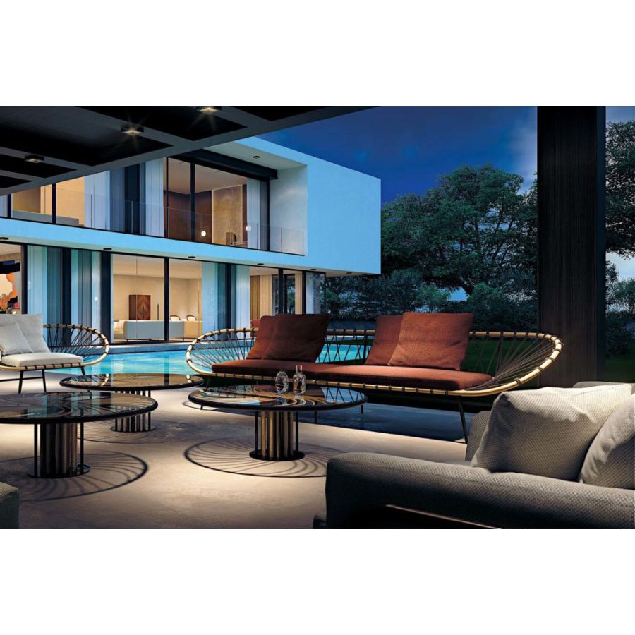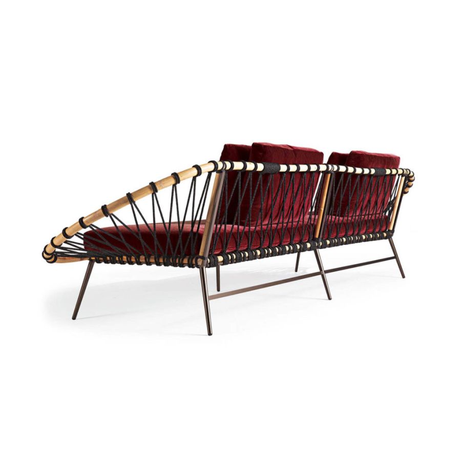 DISCOVERY is an outdoor living room that consists of a sofa and an armchair with an innovative and masterfully crafted design. Harmoniously combining different materials, the elements of the DISCOVERY outdoor living room have a natural Manao structure on which a black rope is woven. The seat is composed of two cushions covered with elegant brown velvet fabric. The refinement of the design and the materials used allows this element to coexist in indoor and outdoor settings. ZANABONI provides two versions of this product, one for indoor and one for outdoor.