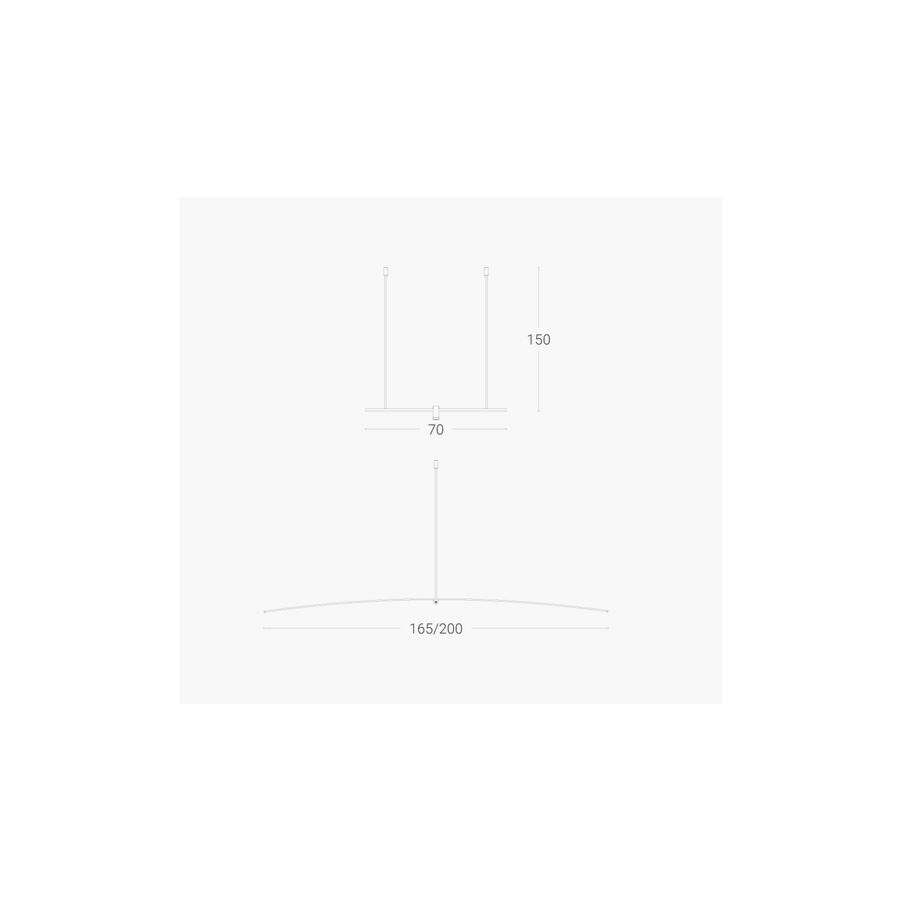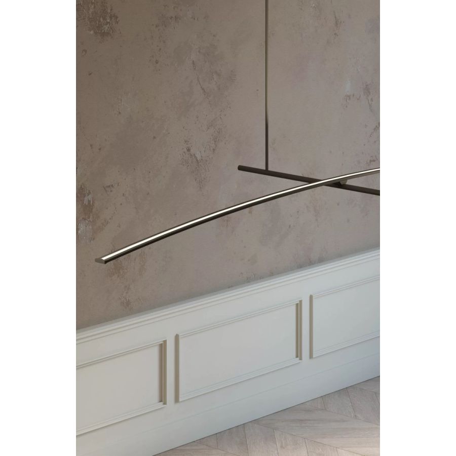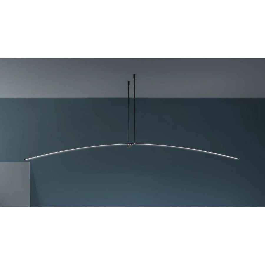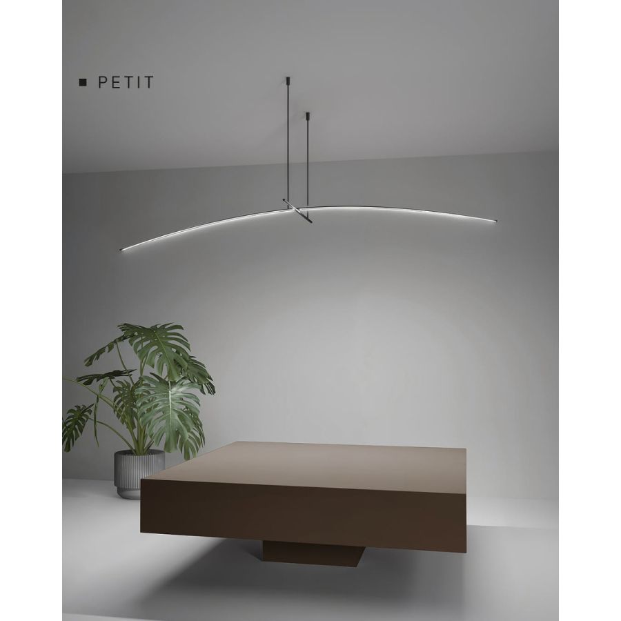 Petit är en studie i balans, lätthet och ren geometri. Designad av BMB Progetti, utformades detta eleganta belysningssystem för att skapa illusionen av viktlöshet—en lampa som verkar sväva obehindrat på en kabel. Dess kännetecknande egenskap är samspelet mellan korsande linjer, som bildar en minimalistisk men slående komposition. Själva konstruktionen är en dialog mellan form och funktion: en smal aluminiumrörformad LED-remsa fungerar som ljuskälla, medan ett andra, ännu tunnare aluminiumrör fungerar som stöd och förstärker känslan av ömtålighet och precision.