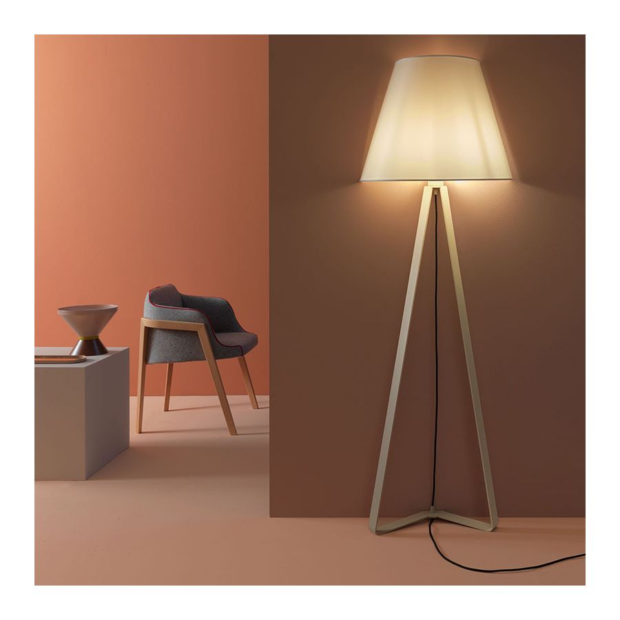 Tre slanka element sträcker sig graciöst uppåt och betonar designens förfinade minimalism. Metallstrukturen, det enda färginslaget, kontrasterar vackert mot den omgivande luftigheten och förstärker dess skulpturala dragningskraft. Oavsett om den placeras i ett modernt loft eller i ett rofyllt vardagsrum, tillför Etrè en känsla av tyst förfining och bevisar att sann elegans ligger i enkelheten.