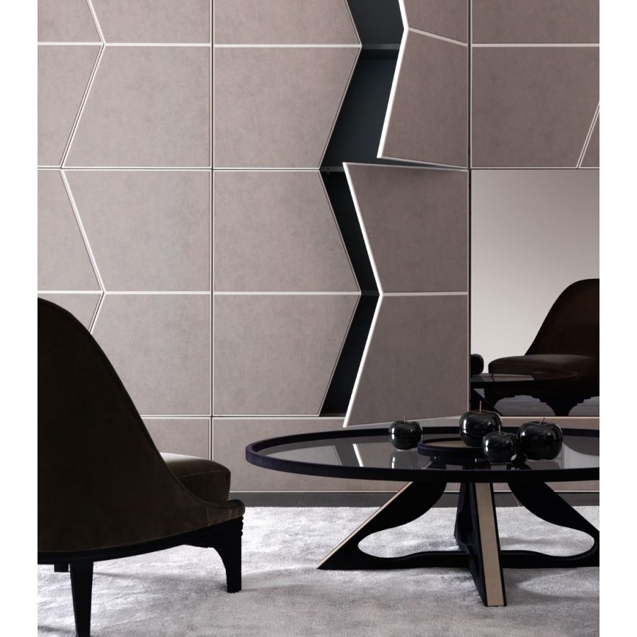 Zenit, the modular project of hidden wall- units can be integrated to the Zenit wall panels; it is suitable for every wall, it is able to create elegant walls with an exclusive design. With push-pull wooden lacquered doors, upholstered doors in leather or eco-leather, mirrored or glass doors. Zenit is a mosaic to be shaped by the designer’s hands, thoughts to create unnoticeable but practical storage units. Closed elements, open shelves, display units with integrated lighting kit, special doors to hide TV and devices, technical spaces, strongboxes, switchboards: all with the use of doors with aligned metal frames to obtain the “wall” effect. Zenit can be adapted to be used in the day and night area, and with its wide choice of finishing and the incredible versatility can be employed for the simplest or the most ambitious challenge. Play with the storage units in different widths, adapt the project to your interior, always thinking to the design and the usefulness. Unleash your creativity and be amazed with Zenit.