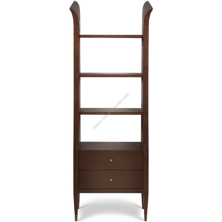 An outstanding slender book or display case with a sleek outline, whose form is seen rising into hand carved winglets. The case features four fixed shelves two drawers and metal cap feet, providing the ultimate in display elegance. Also available in taller and wider versions 87-0009 and 87-0010