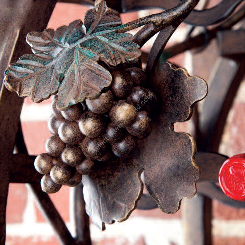 This wine cage by Robers is a unique piece of furniture. It shows the high skill of the blacksmiths to work with steel, process it in several different ways, and get a fantastic result. The wine cage is fully handcrafted. The curved decorative lines, the cluster of grape embraced by the small leaves shows the filigree the brand possesses. Such a rare design will become a statement in the cellar or the dining room made in the Industrial or Classic style. Complement the room by the lighting and accessories from the same collection “Indoor” and you will get a stylish space with a soul.