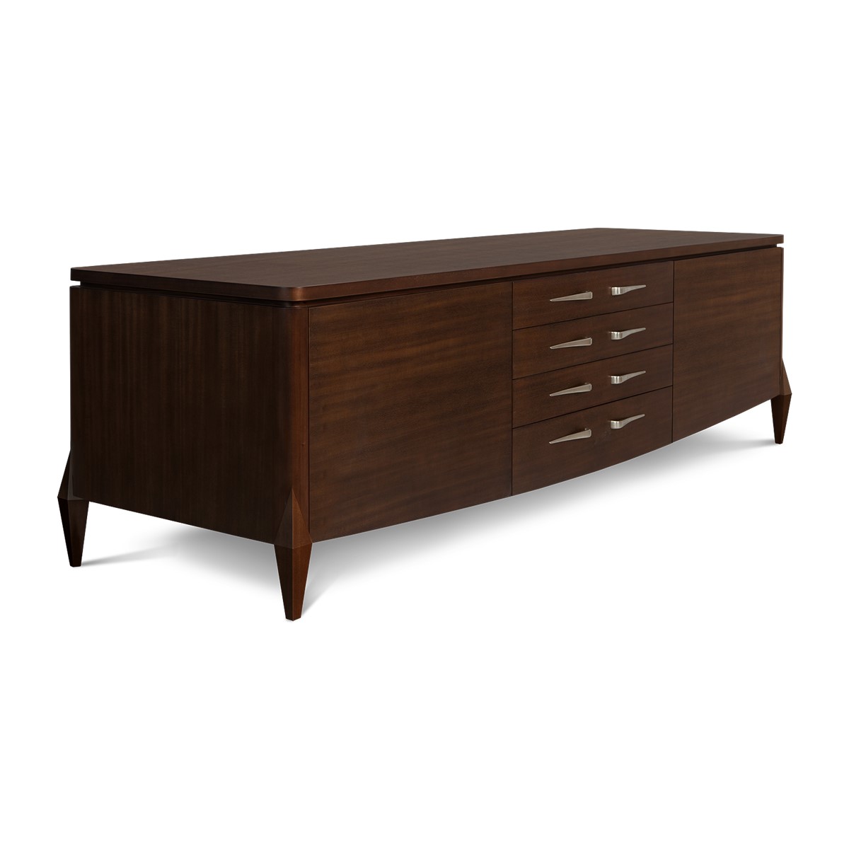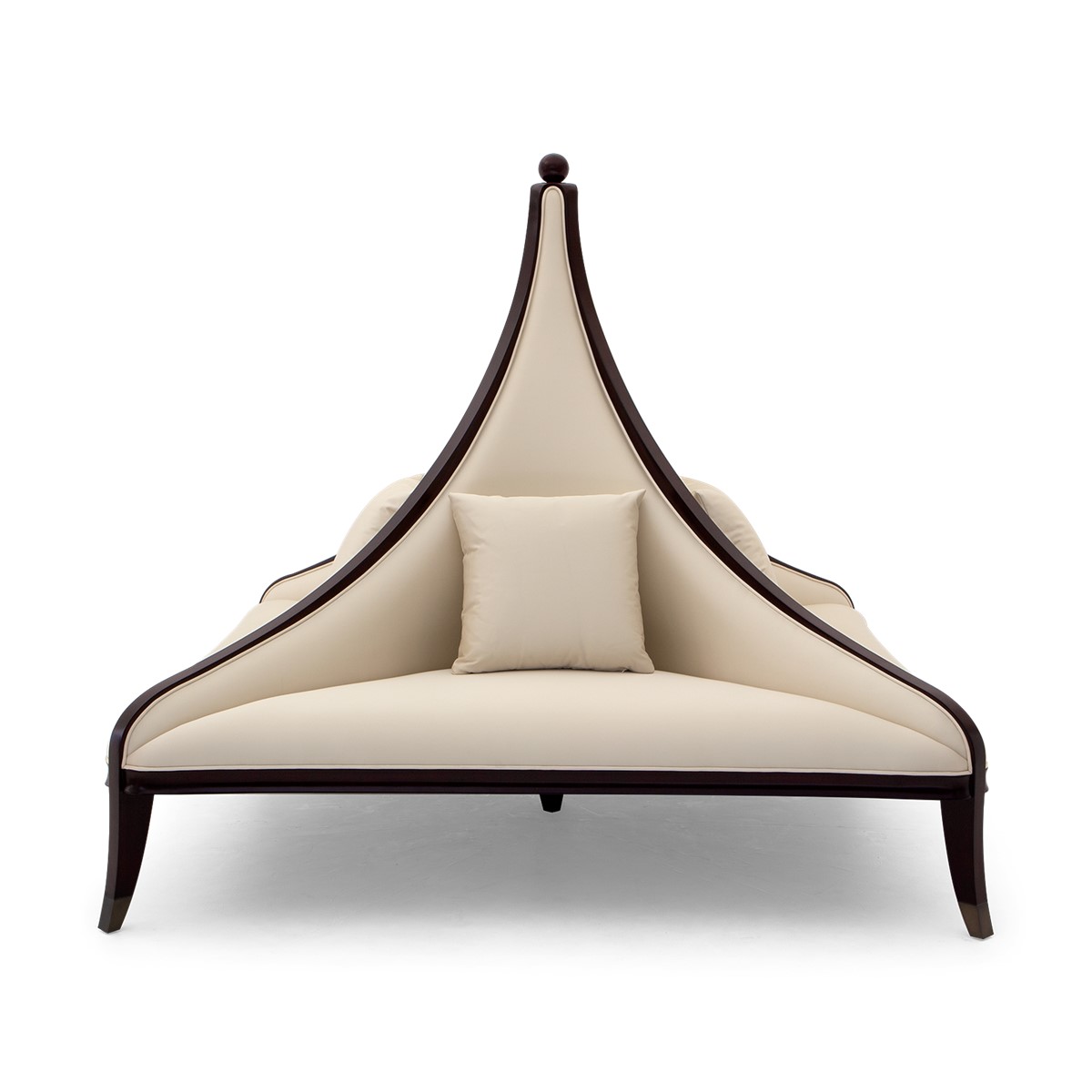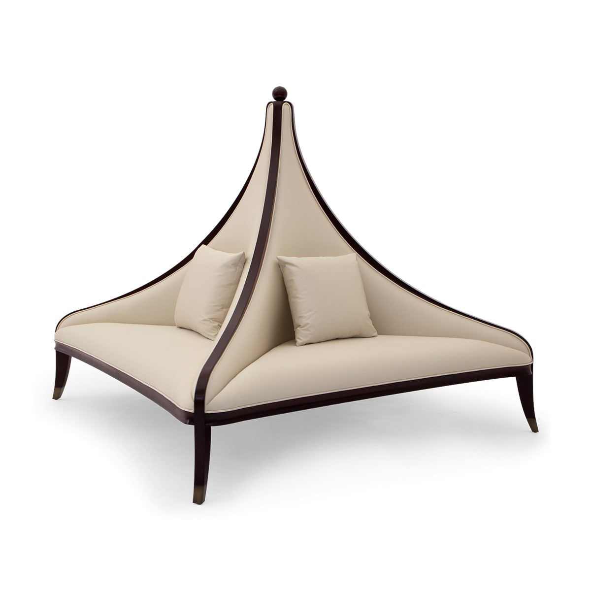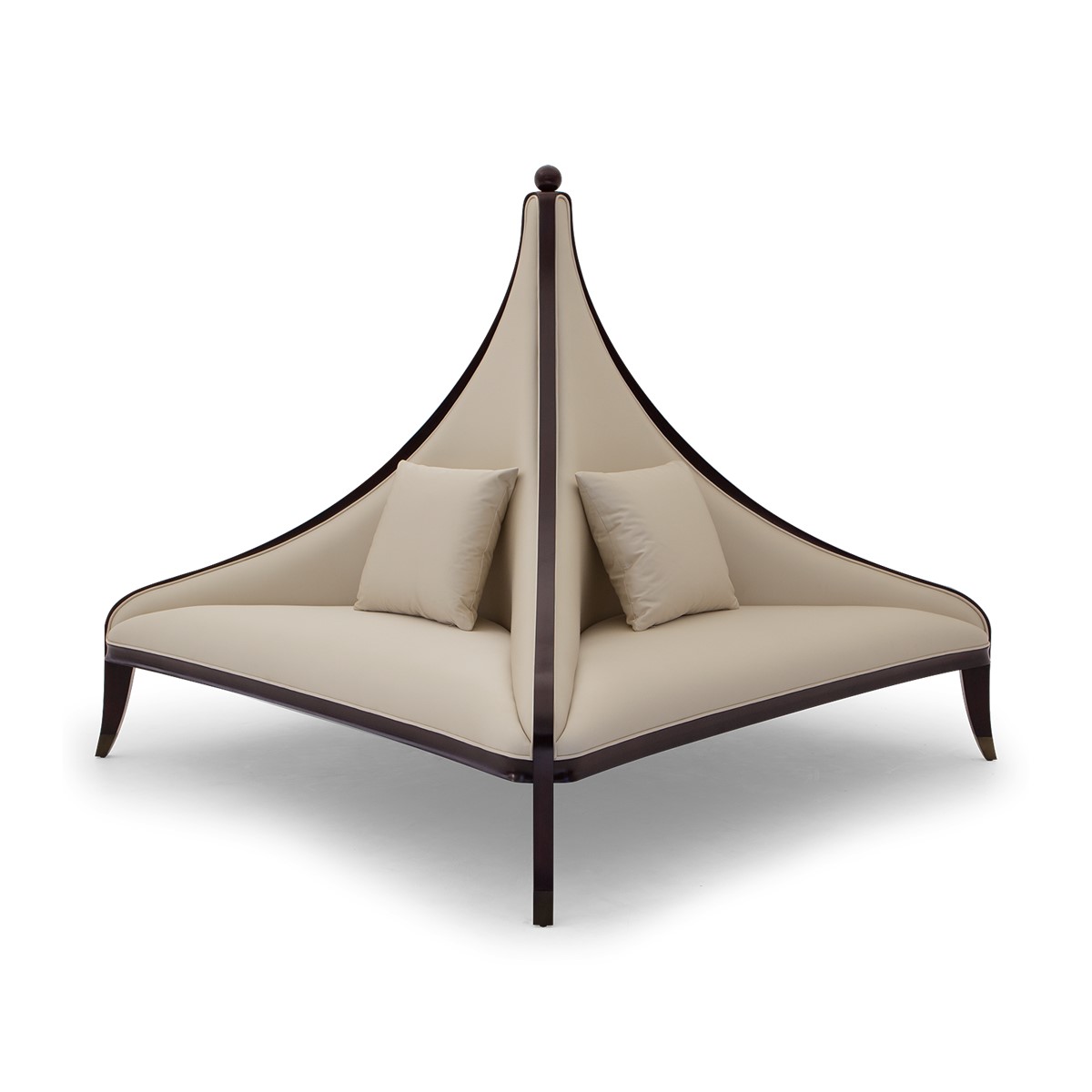 Highly engaging Christopher Guy centerpiece, a pyramid banquette made up of four sumptuous seats with metal finish tipped legs...