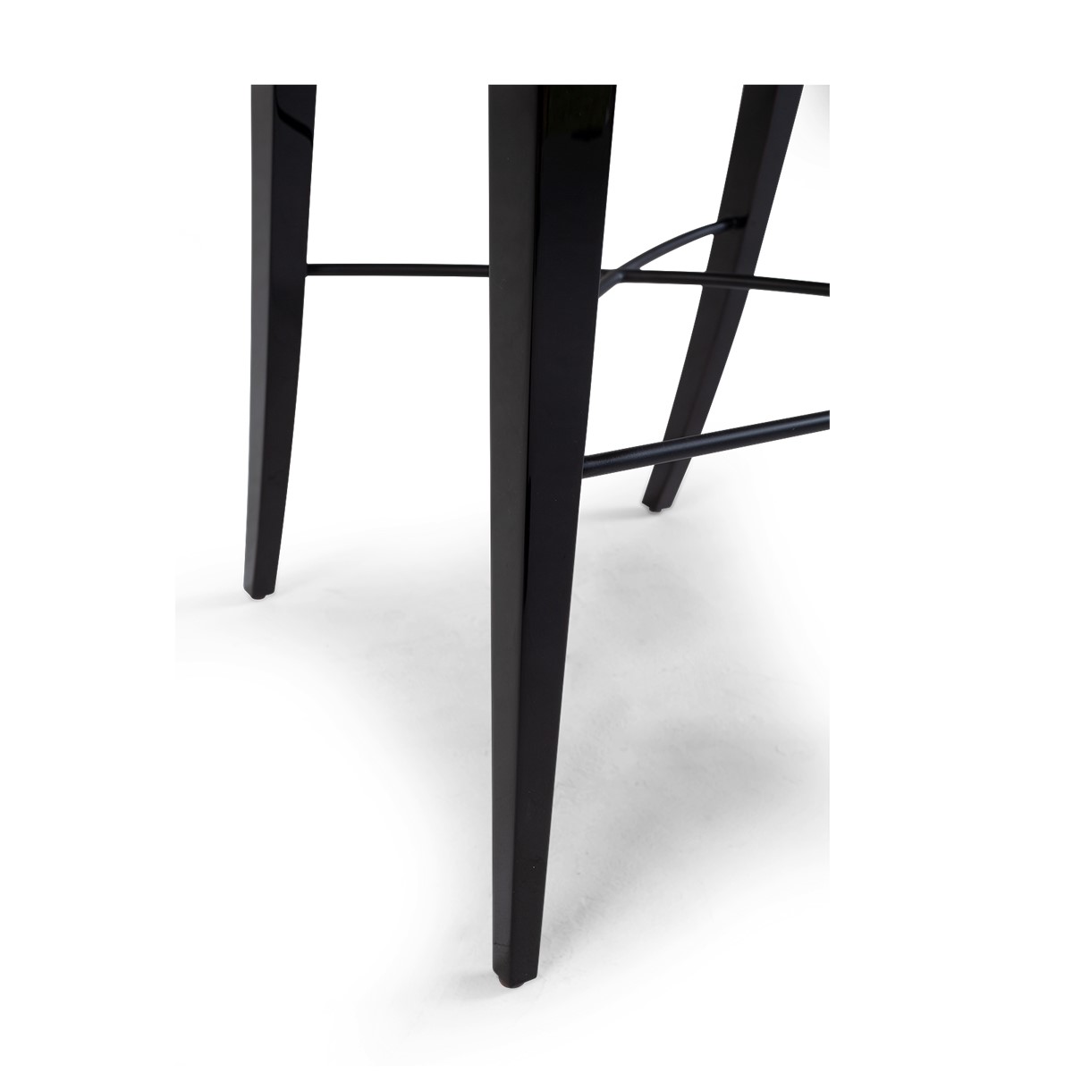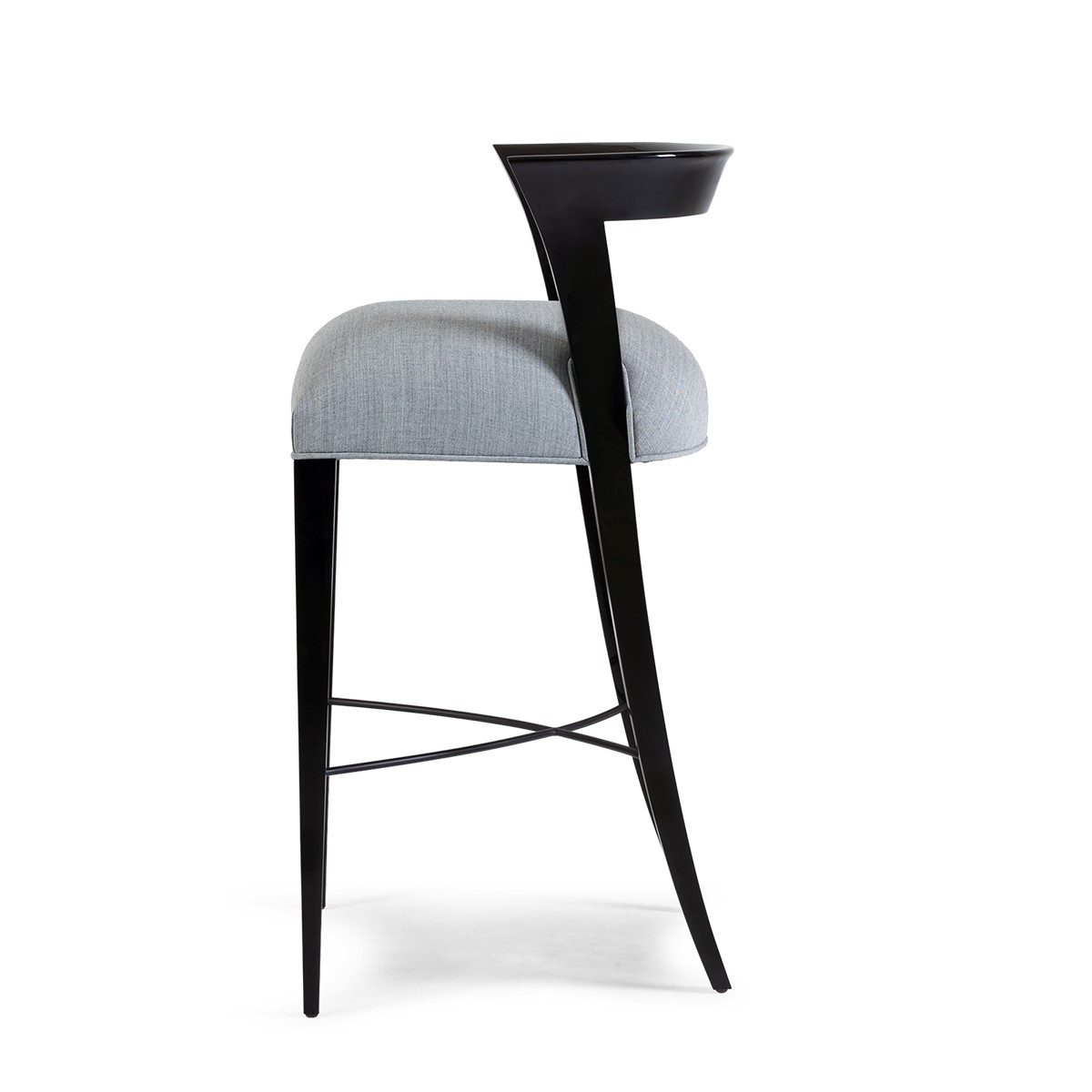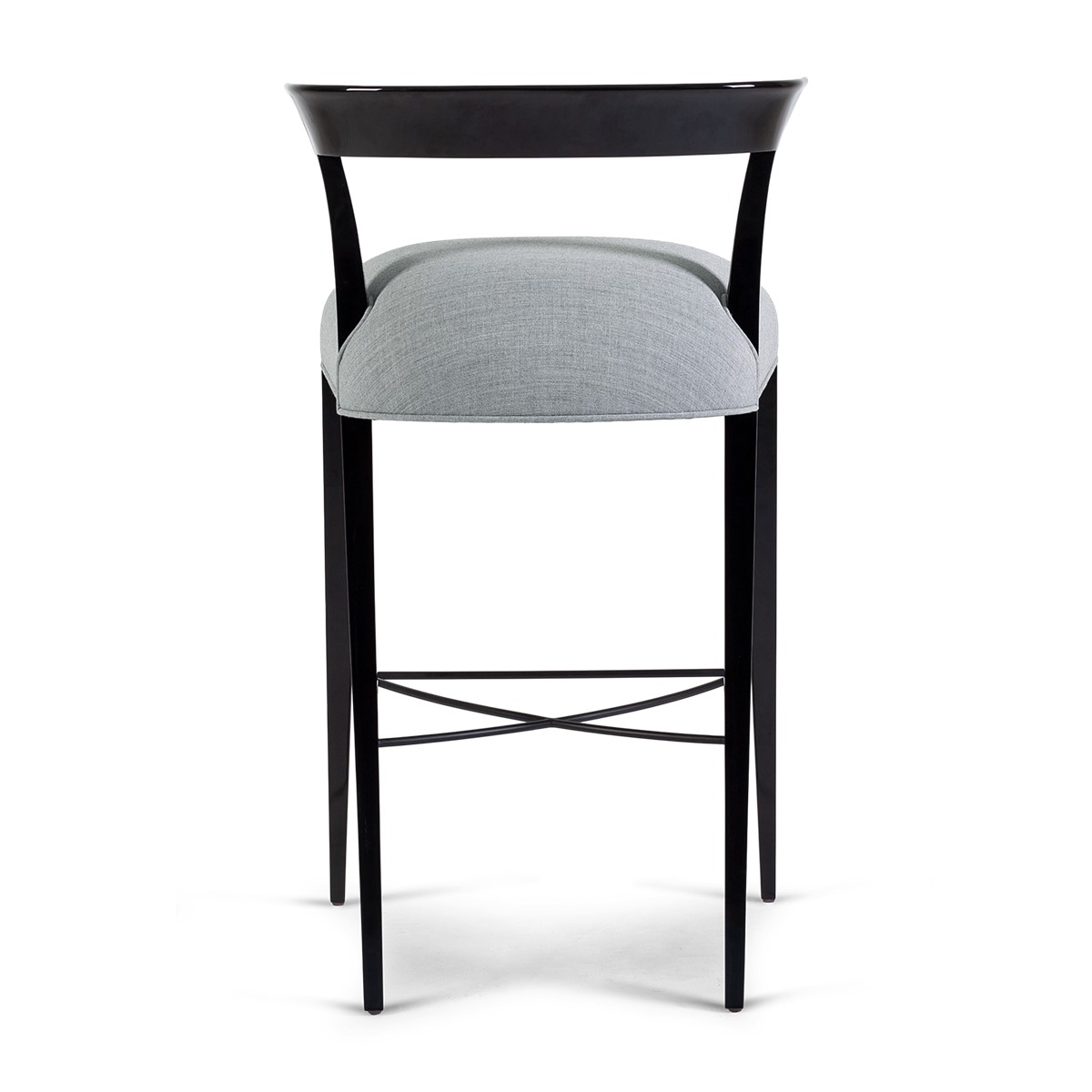 A cantilevered back and sweeping saber legs lend this striking contemporary bistro stool a role at any counter or bistro table.